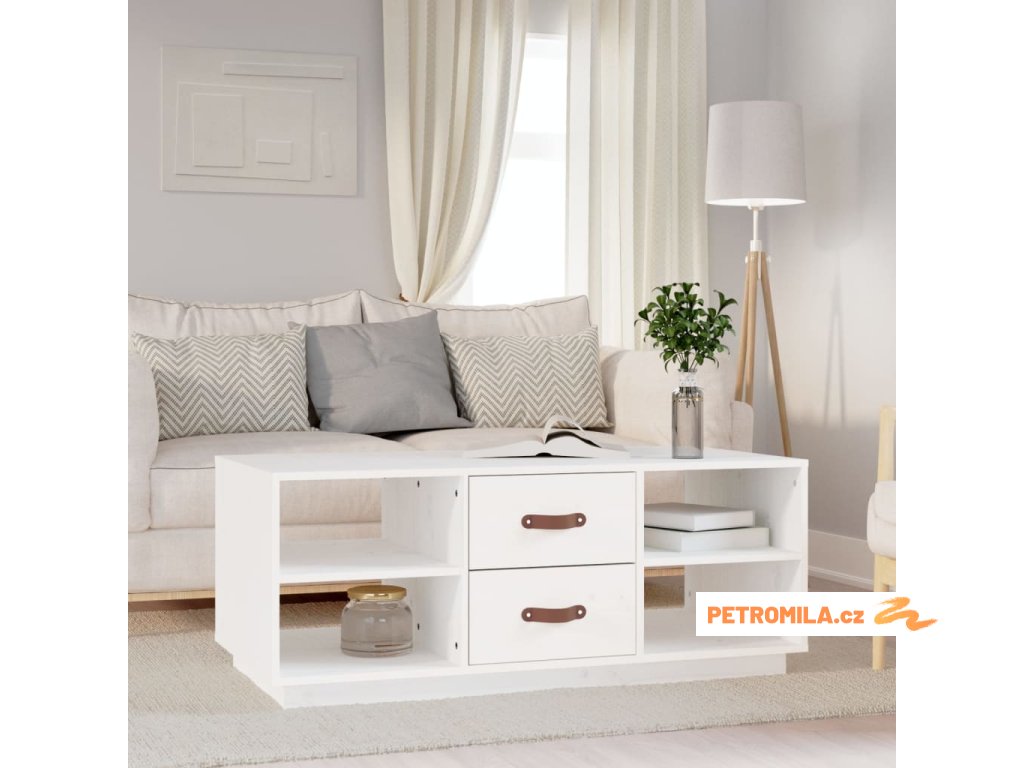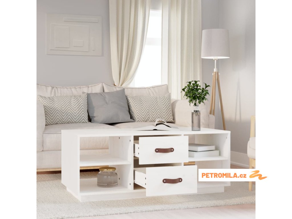 Konferenční stolek bílý 100 x 50 x 41 cm masivní borové dřevo