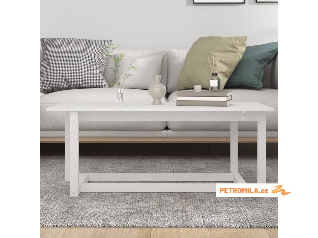 Konferenční stolek bílý 110 x 55 x 45 cm masivní borové dřevo