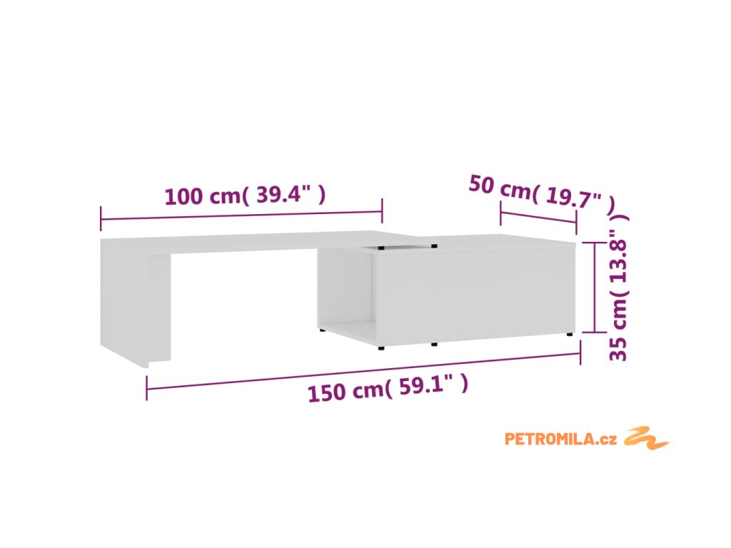 Konferenční stolek 100x60x42 cm vysoký lesk bílý