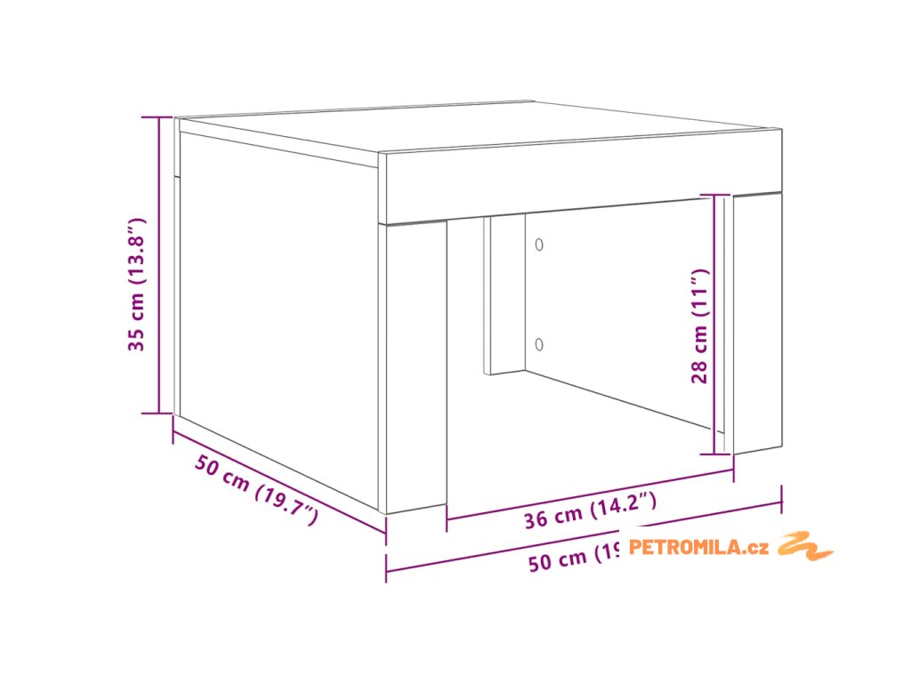 - Rozměry: 50 x 50 x 35 cm (D x Š x V)