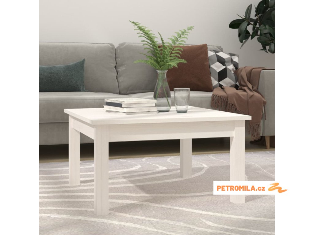 Konferenční stolek bílý 55 x 55 x 30 cm masivní borové dřevo