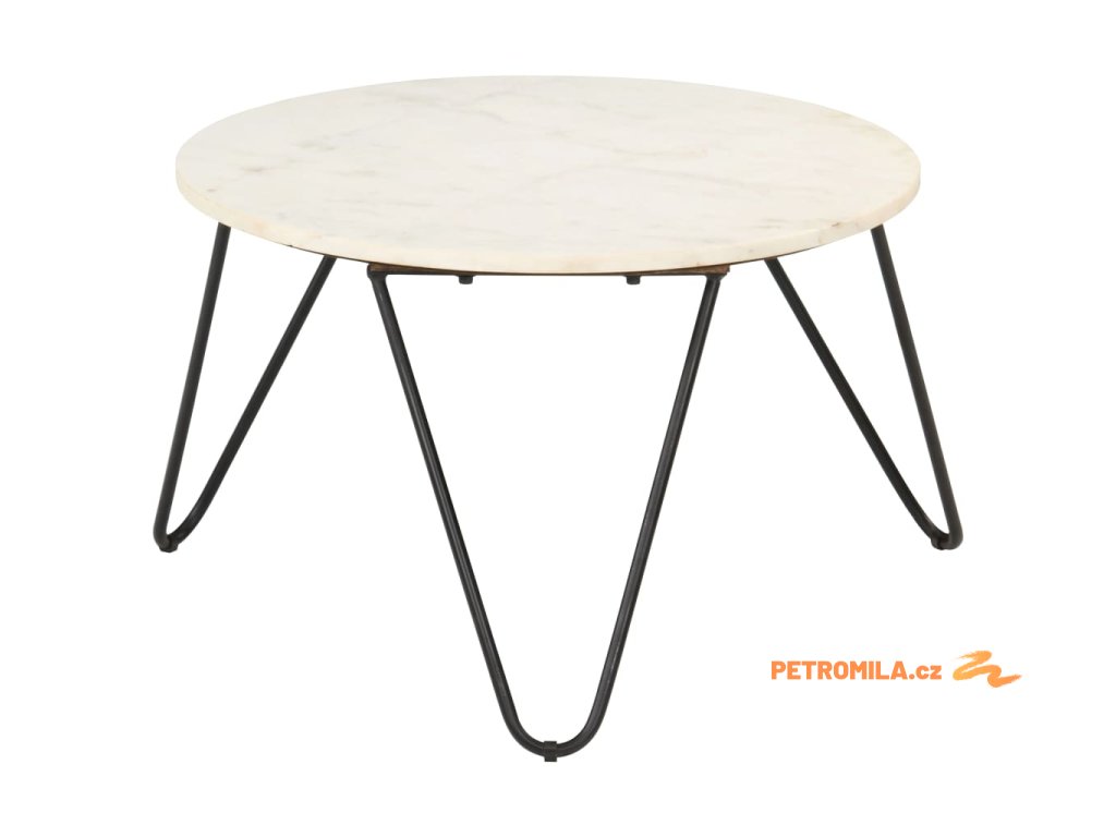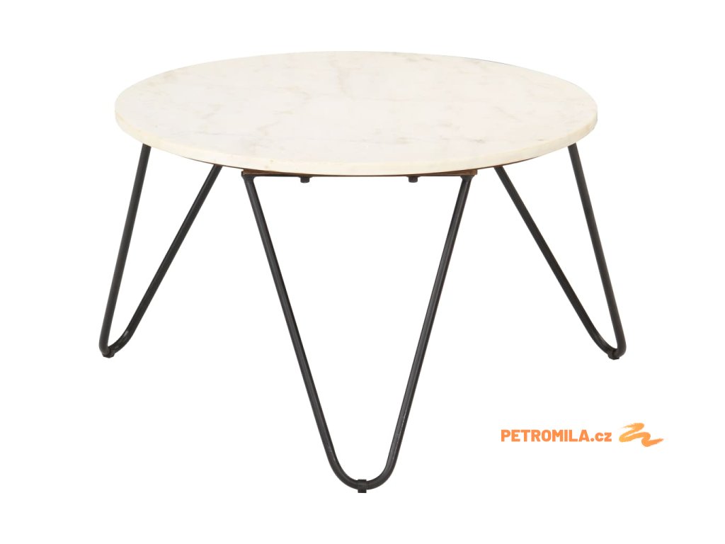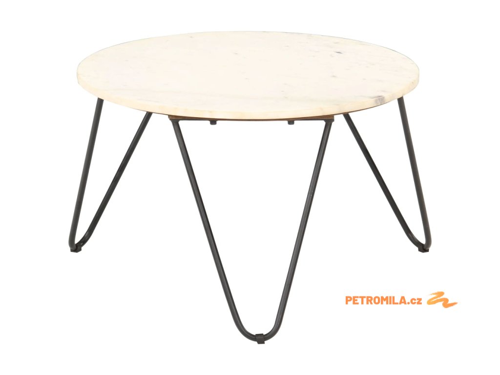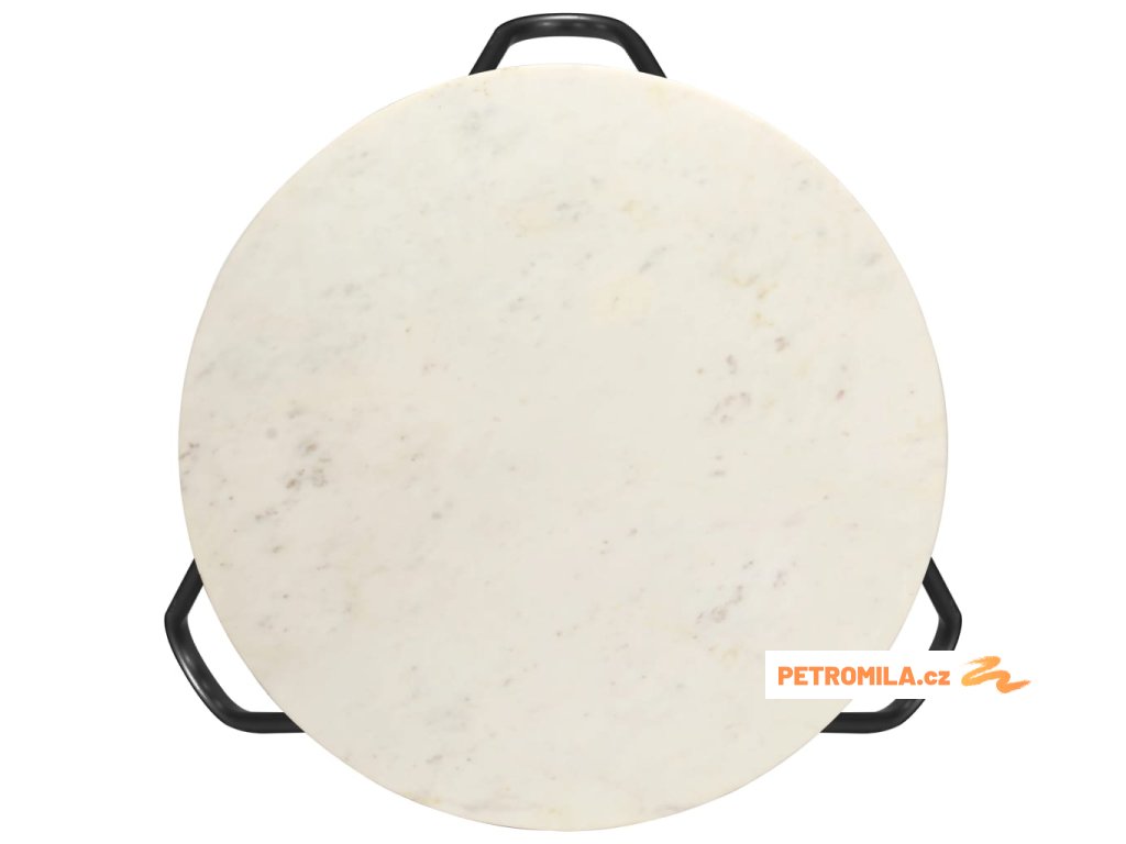 Stolek je vyrobený z pravého kamene s mramorovým vzorem a odolného práškově lakovaného železného rámu. Je stabilní a má dlouhou životnost. Na stabilní stolní desku si můžete s důvěrou umístit vaše nápoje, vázy, mísy s ovocem a jiné dekorace. Tento koncový stolek se snadno čistí vlhkým hadříkem.