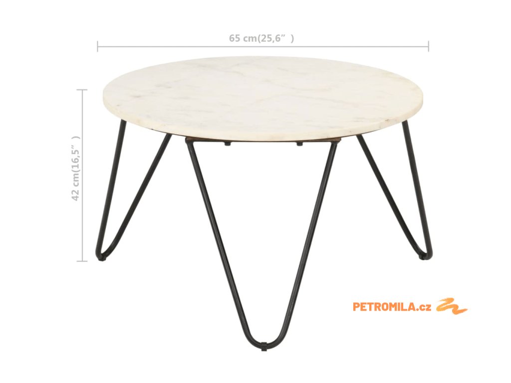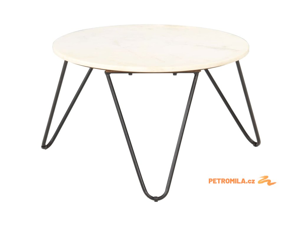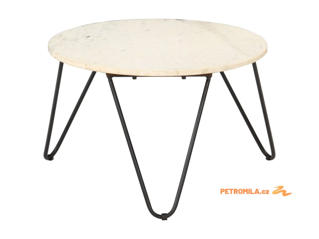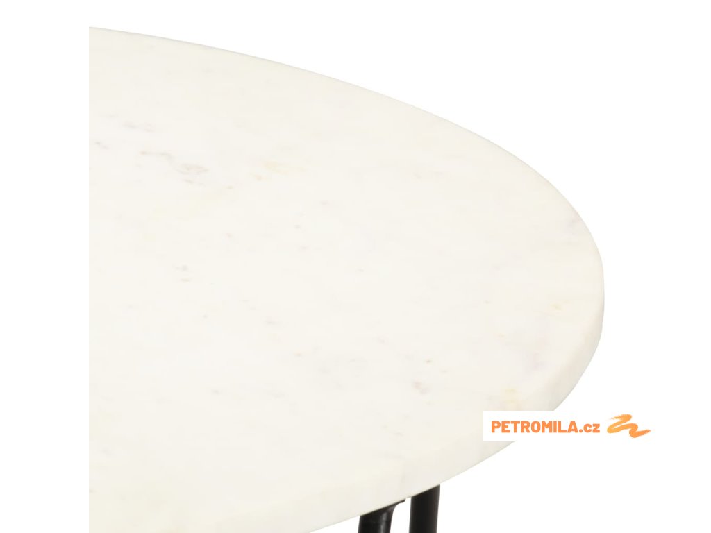 Stolek je vyrobený z pravého kamene s mramorovým vzorem a odolného práškově lakovaného železného rámu. Je stabilní a má dlouhou životnost. Na stabilní stolní desku si můžete s důvěrou umístit vaše nápoje, vázy, mísy s ovocem a jiné dekorace. Tento koncový stolek se snadno čistí vlhkým hadříkem.