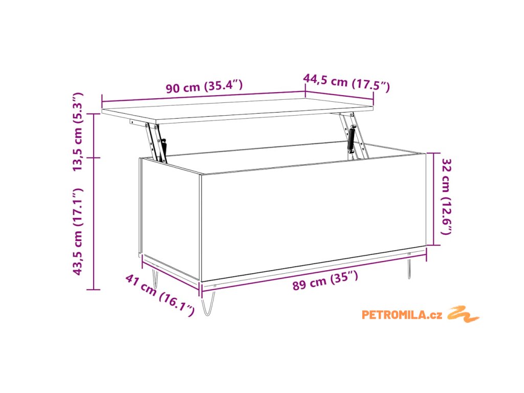 - Praktický design se zvedací deskou: Horní desku tohoto odkládacího stolku lze hladce zvednout do pohodlné výšky, a přeměnit ho tak na místo, kde můžete pracovat nebo jíst.