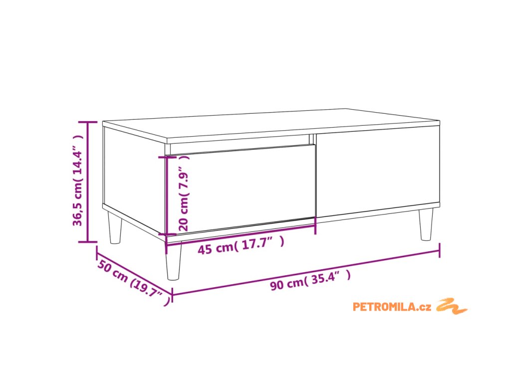Konferenční stolek bílý 90 x 50 x 36,5 cm kompozitní dřevo