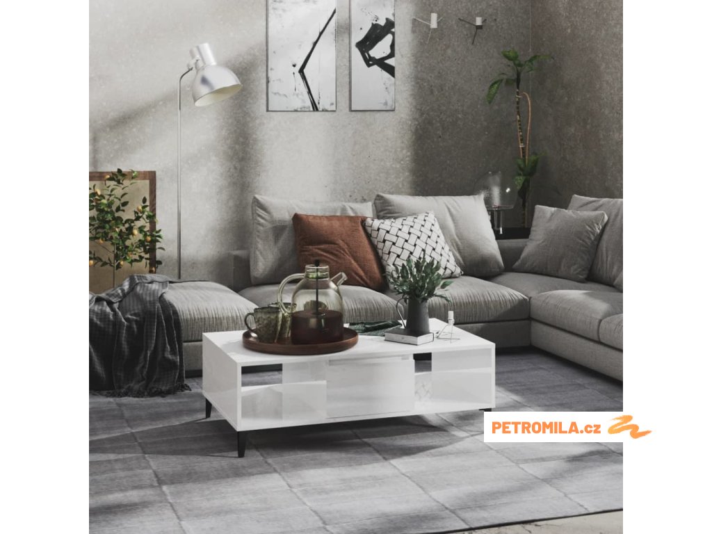 Konferenční stolek bílý lesklý 103,5x60x35 cm kompozitní dřevo