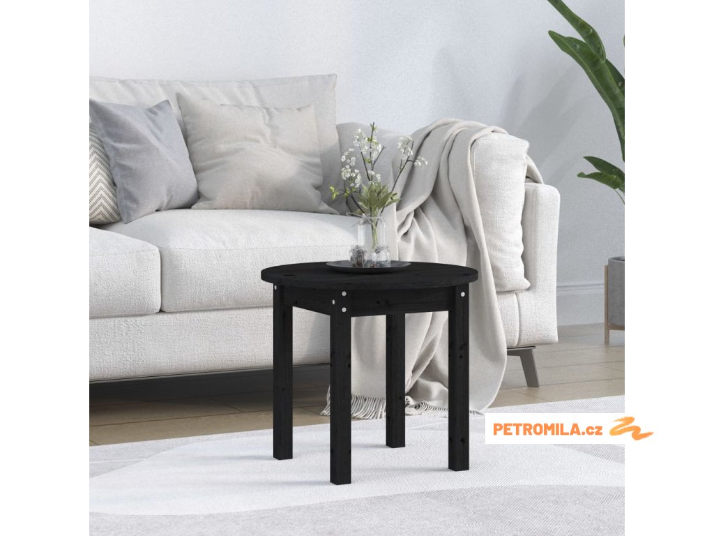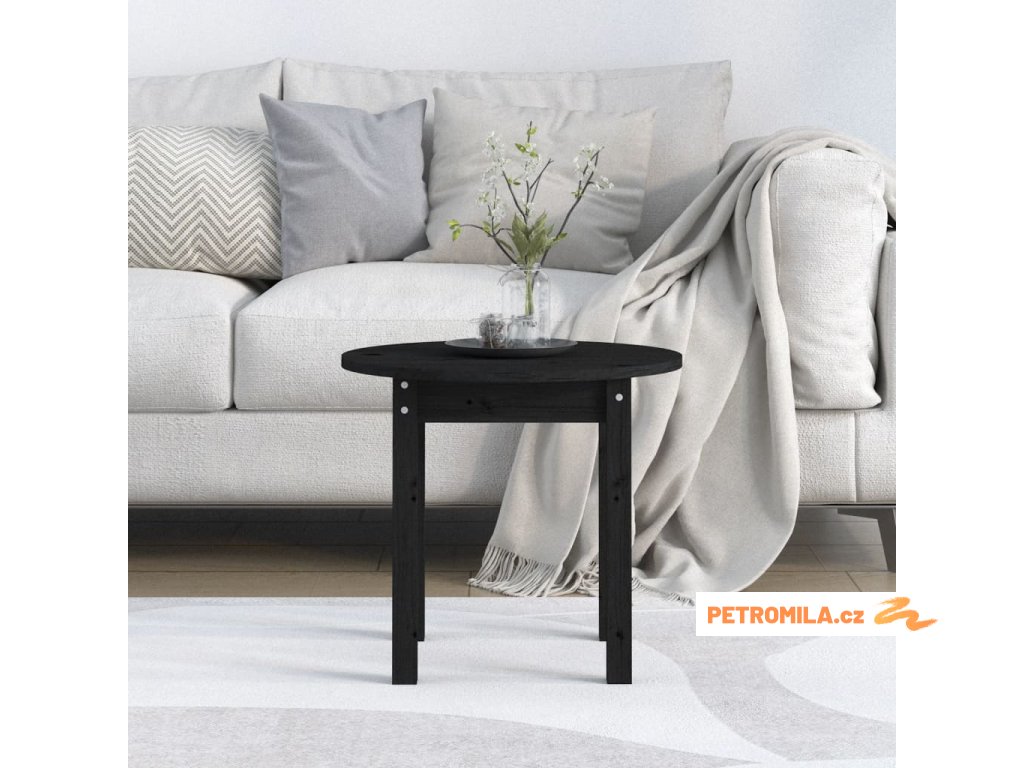 Konferenční stolek černý Ø 45 x 40 cm masivní borové dřevo