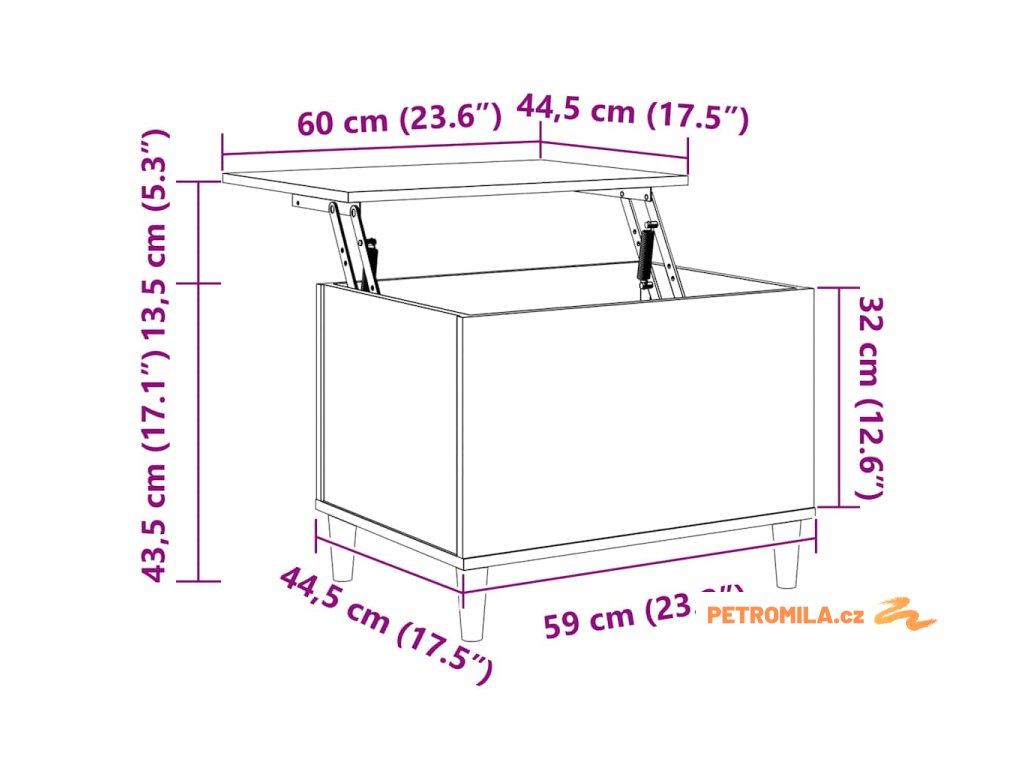 - Design se zvedací deskou: Stolní deska tohoto stolku k pohovce se dá hladce zvednout do pohodlné výšky, a tím jej přeměnit na místo, kde můžete pracovat nebo stolovat.