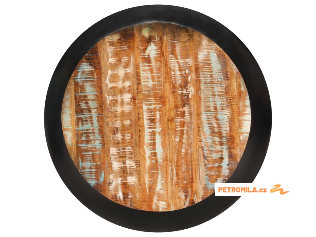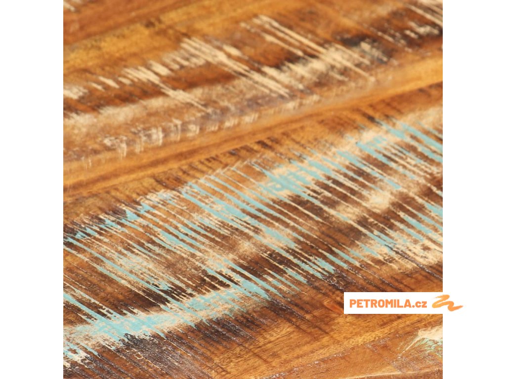- Materiál: masivní recyklované dřevo ve smíšeném barevném provedení, černě lakované železo