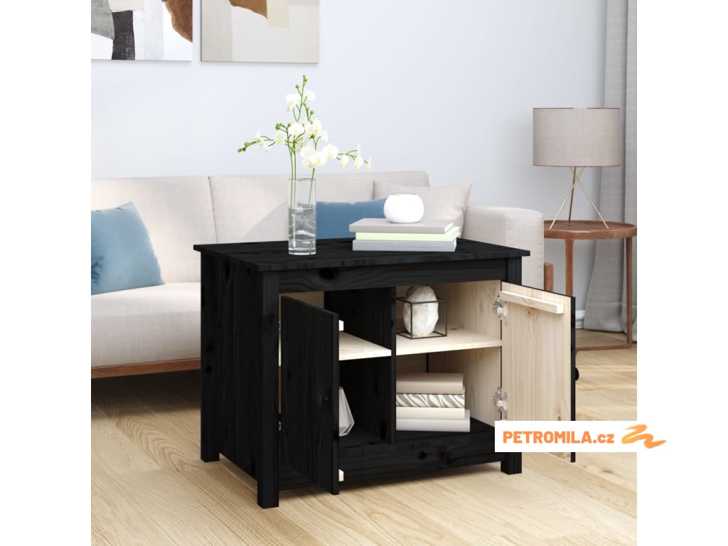 Konferenční stolek černý 71 x 49 x 55 cm masivní borové dřevo
