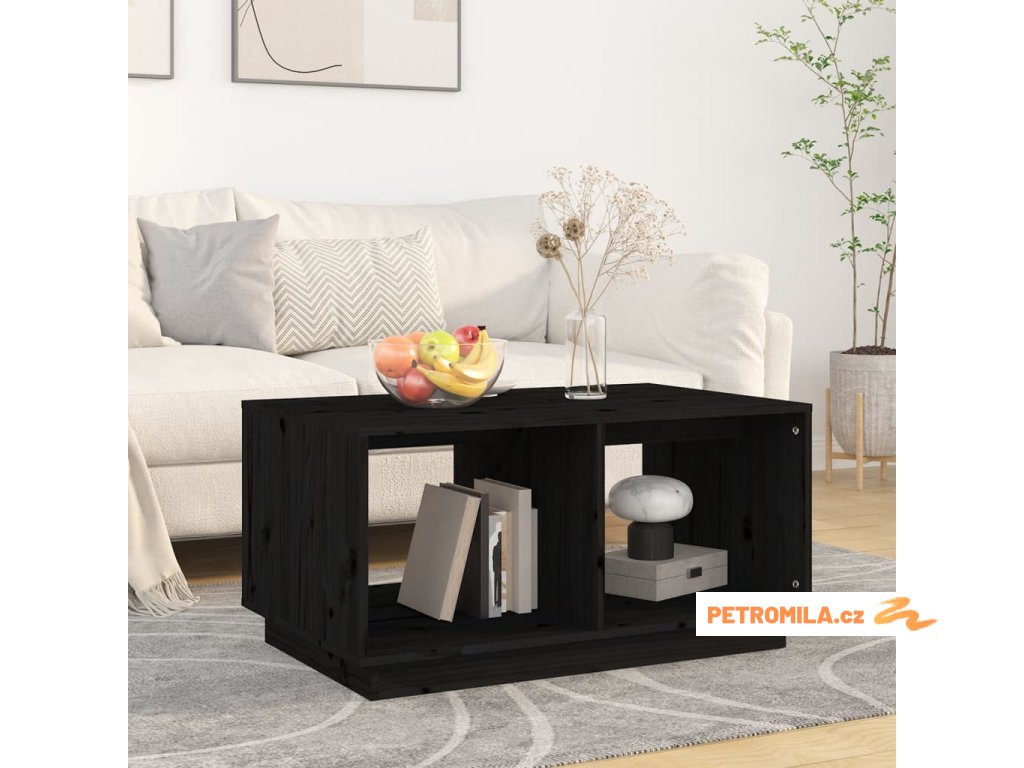 Konferenční stolek černý 80 x 50 x 40 cm masivní borové dřevo