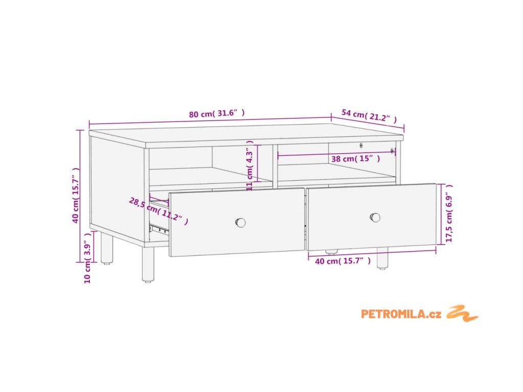 Konferenční stolek černý 80x54x40 cm masivní mangovníkové dřevo