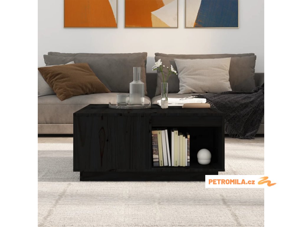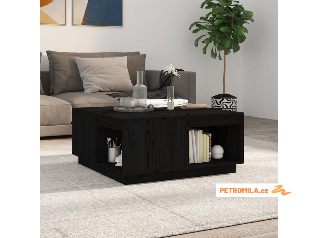 Konferenční stolek černý 80x81x36,5 cm masivní borové dřevo