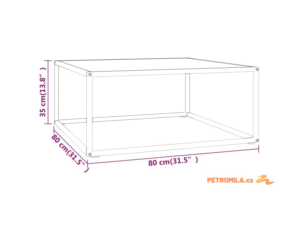 Konferenční stolek černý s bílým mramorovým sklem 80x80x35 cm