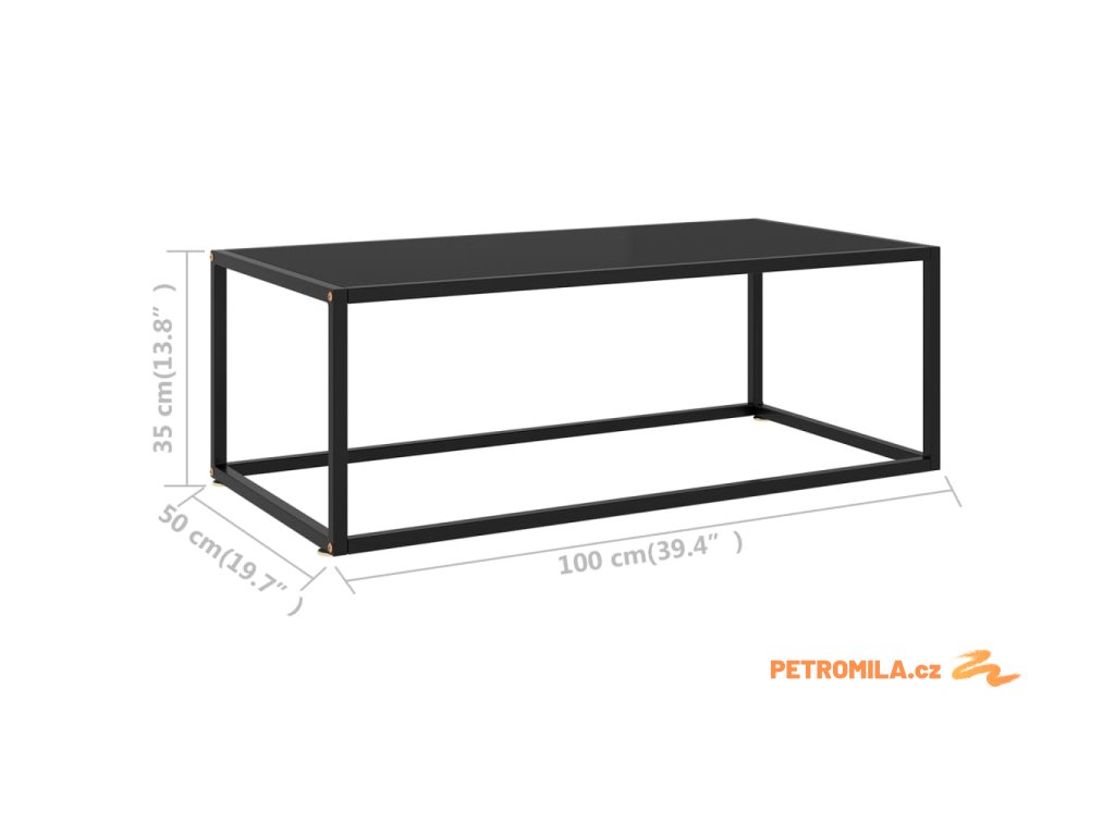 Konferenční stolek černý s černým sklem 100 x 50 x 35 cm