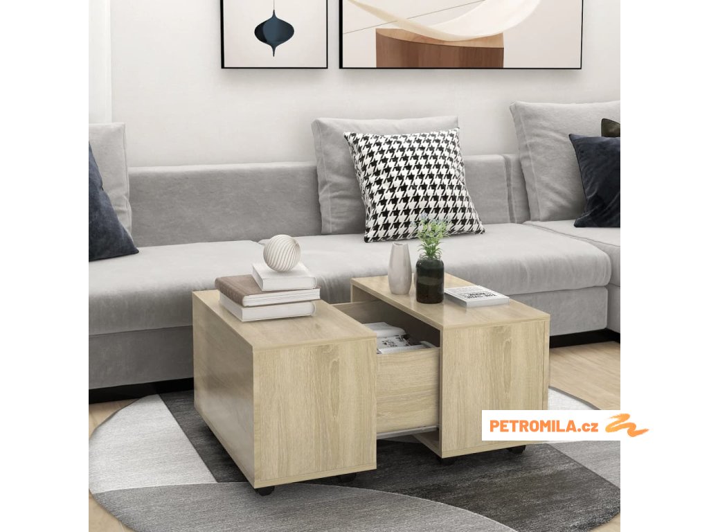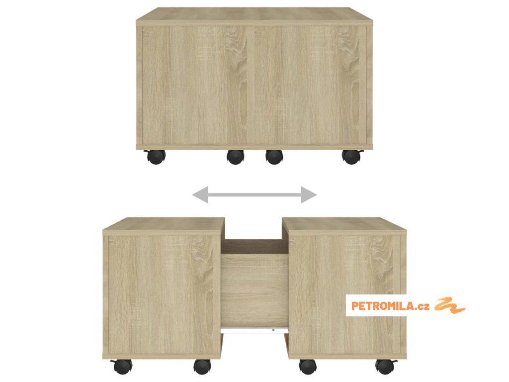 Konferenční stolek je vyrobený z kompozitního dřeva, což zajišťuje jeho odolnost, trvanlivost a bude vám sloužit po dlouhou dobu. Tento konferenční stolek lze z obou stran rozšířit, čímž získáte dostatek prostoru pro vaše časopisy, knihy, dálkové ovládání a různé další drobné předměty, které chcete mít na dosah. Pomocí koleček můžete stolek snadno přemisťovat z místa na místo. Navíc ho snadno očistíte vlhkým hadříkem.