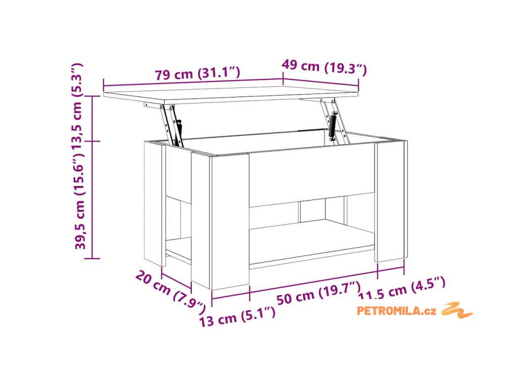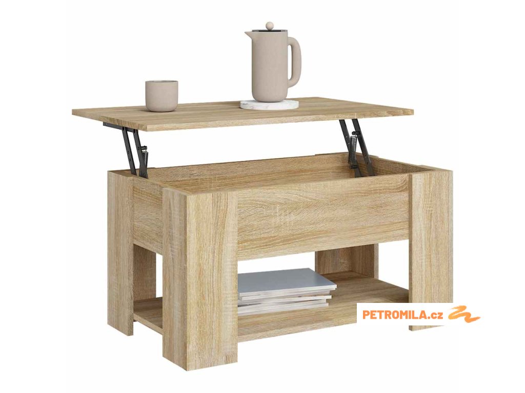 - Praktický design se zvedací deskou: Horní desku tohoto odkládacího stolku lze hladce zvednout do pohodlné výšky, a přeměnit ho tak na místo, kde můžete pracovat nebo jíst.