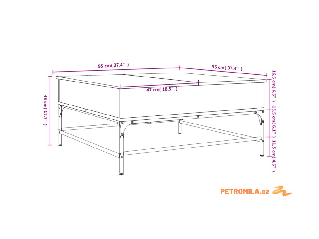 Konferenční stolek dub sonoma 95 x 95 x 45 cm kompozit a kov