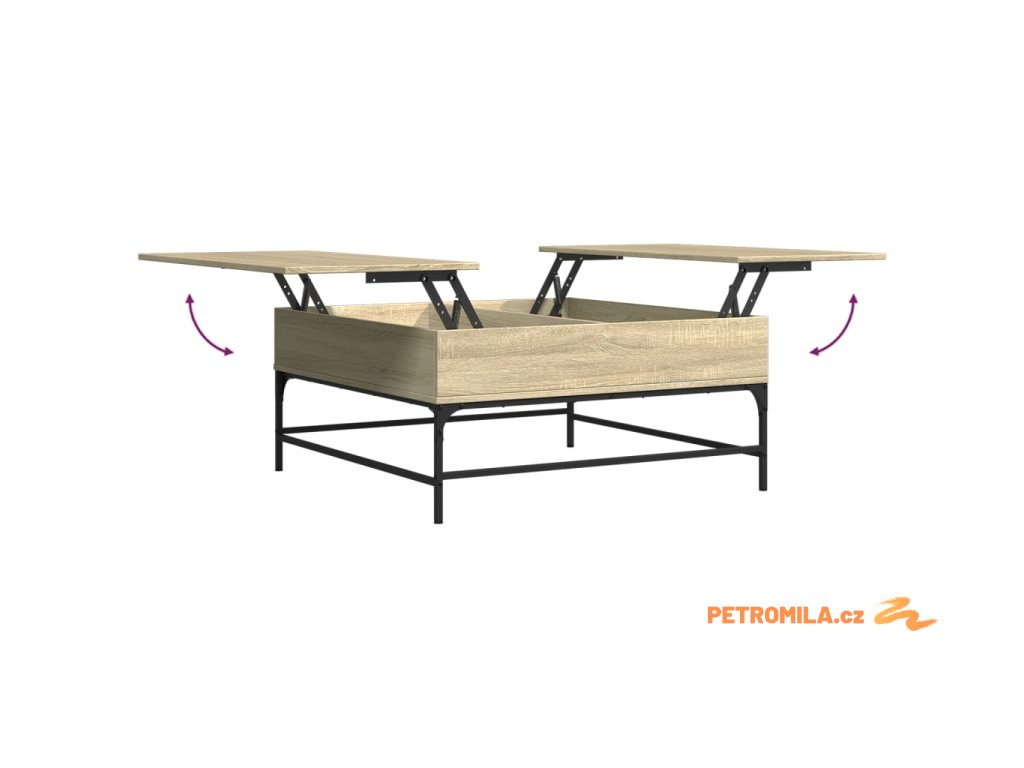 - Design se zvedací deskou: Stolní deska tohoto stolku k pohovce se dá hladce zvednout do pohodlné výšky, a tím jej přeměnit na místo, kde můžete pracovat nebo stolovat.