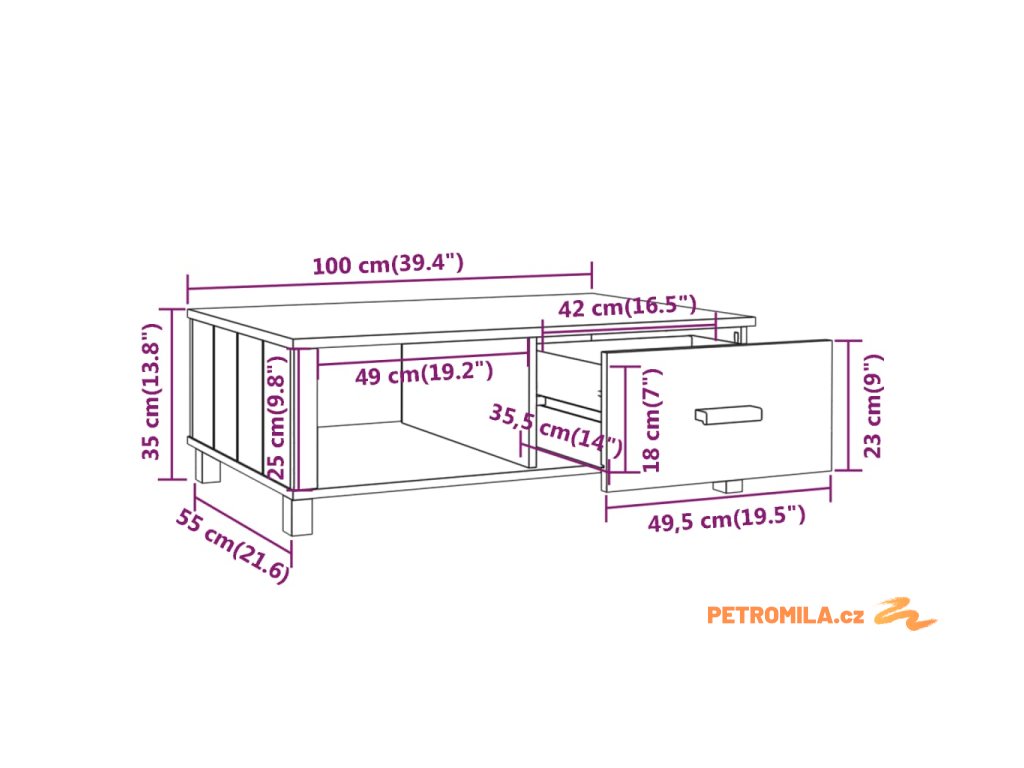 Konferenční stolek HAMAR bílý 100 x 55 x 35 cm masivní borovice