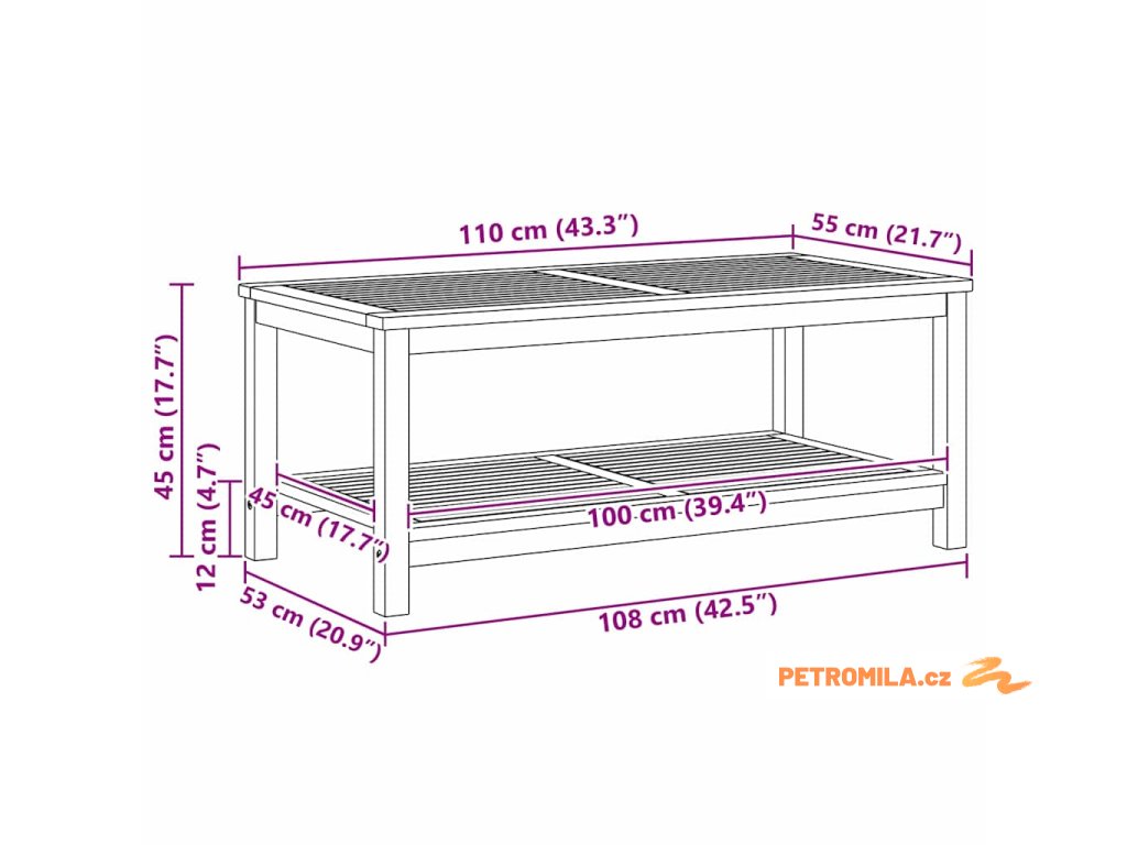 Konferenční stolek, masivní akáciové dřevo, 110x60x40 cm