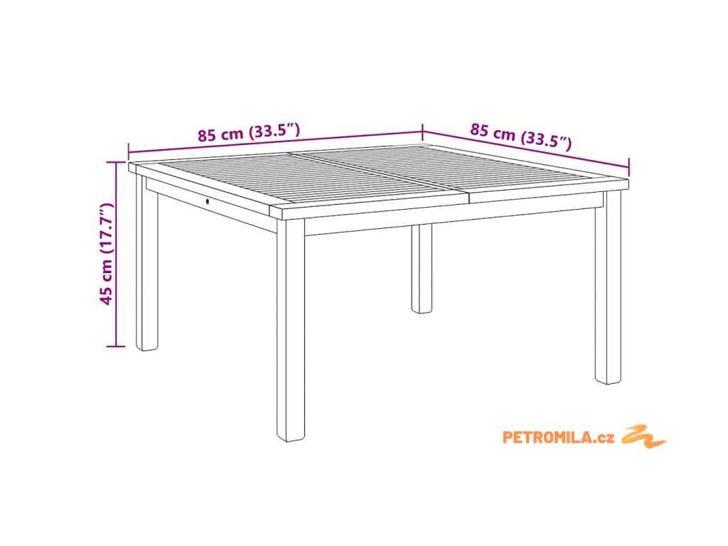- Celkové rozměry: 85 x 85 x 45 cm (D x Š x V)