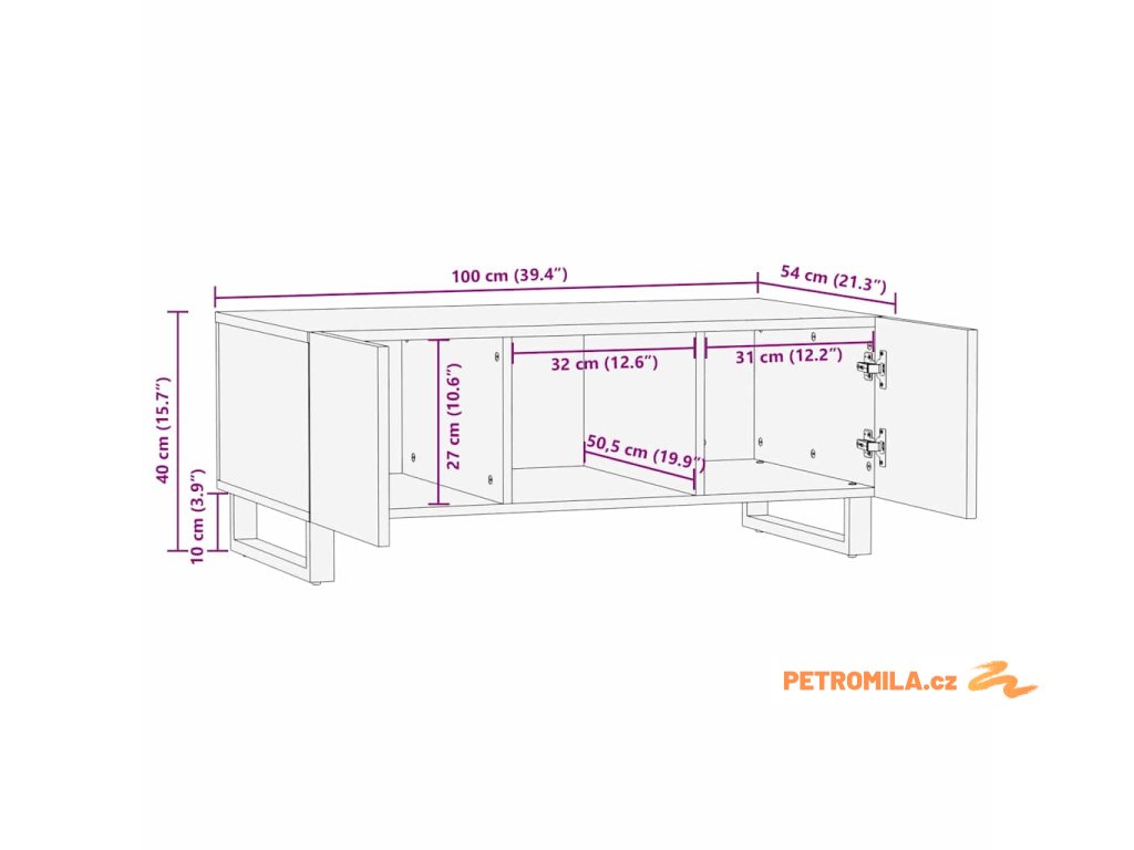 - Celkové rozměry: 100 x 54 x 40 cm (D x Š x V)