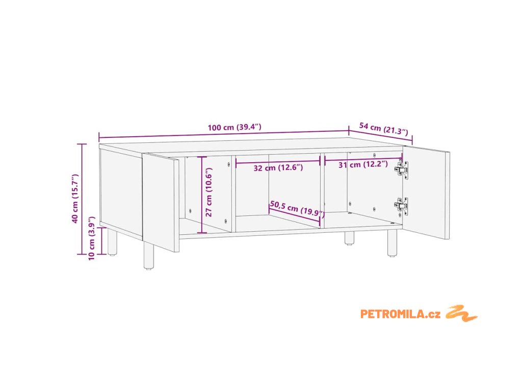 - Celkové rozměry: 100 x 54 x 40 cm (D x Š x V)