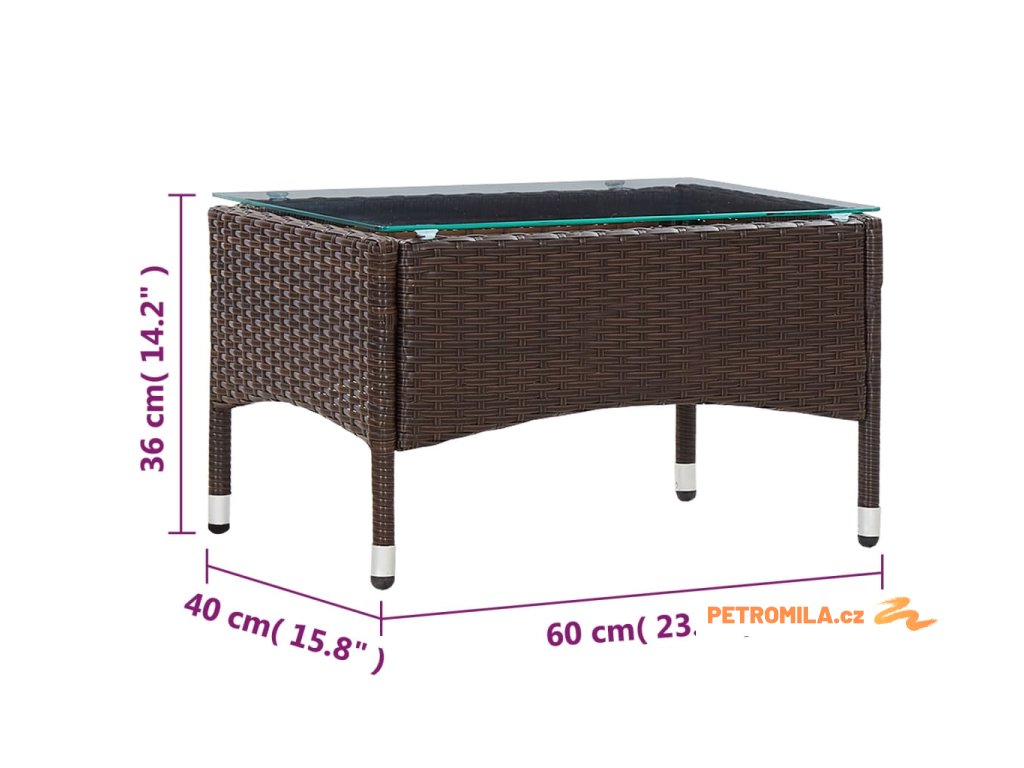 Konferenční stolek hnědý 60 x 40 x 36 cm polyratan
