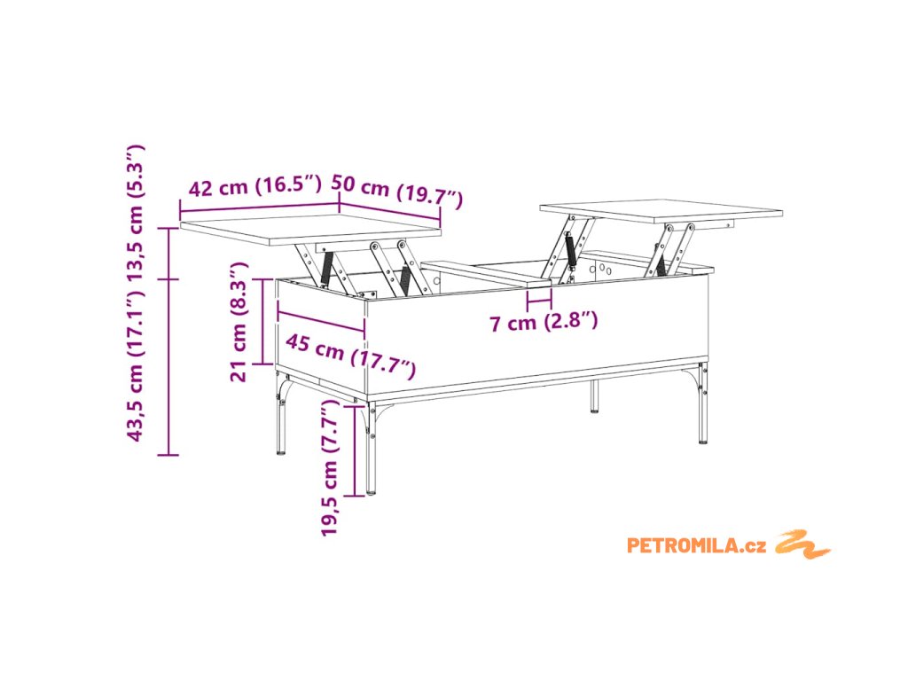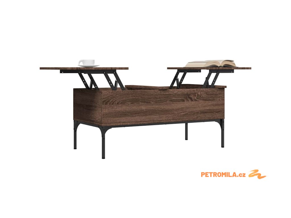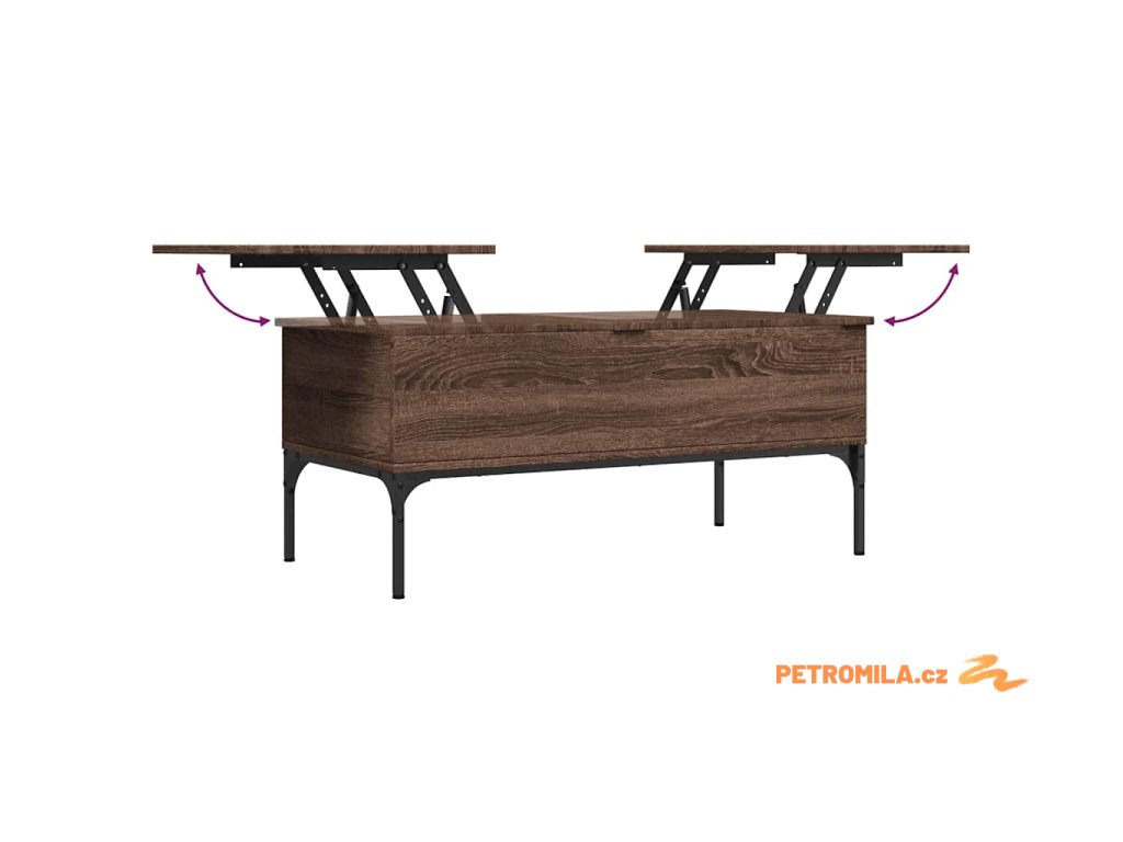 - Design se zvedací deskou: Stolní deska tohoto stolku k pohovce se dá hladce zvednout do pohodlné výšky, a tím jej přeměnit na místo, kde můžete pracovat nebo stolovat.