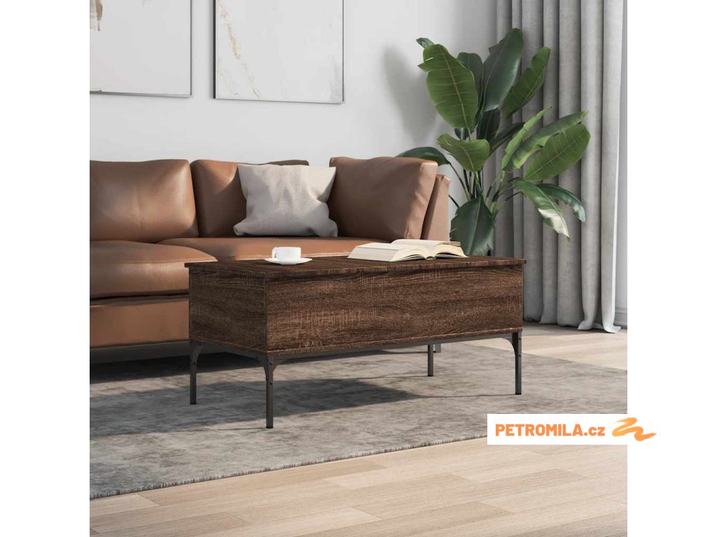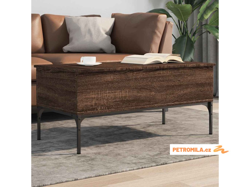 Konferenční stolek hnědý dub 100 x 50 x 45 cm kompozit a kov