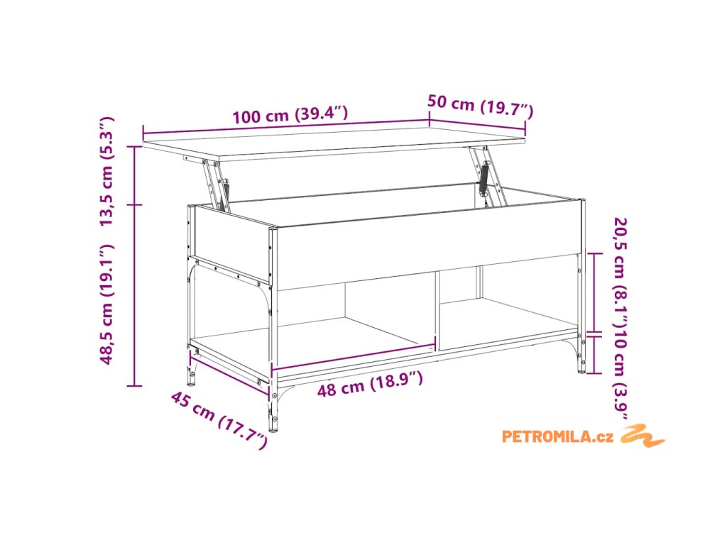 - Dostatek úložného prostoru: Stolek do obývacího pokoje má pod horní deskou spoustu úložného prostoru, jež vám poslouží jako skrytá přihrádka, kde si můžete uložit často používané věci a nebude se vám na ně prášit.