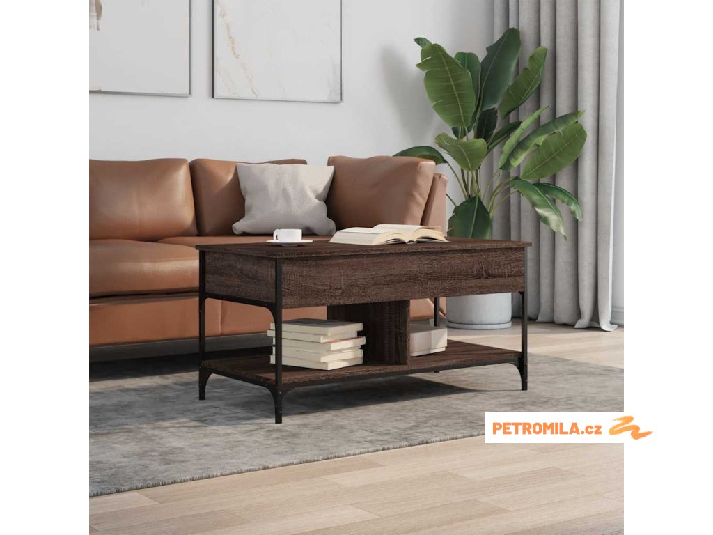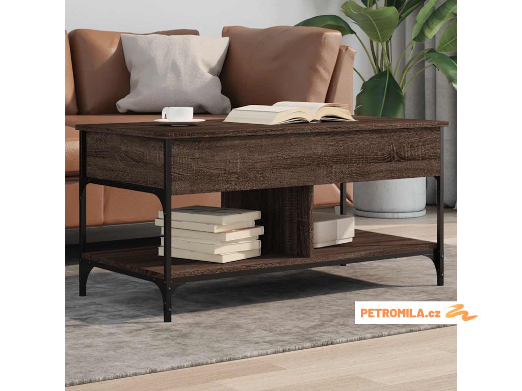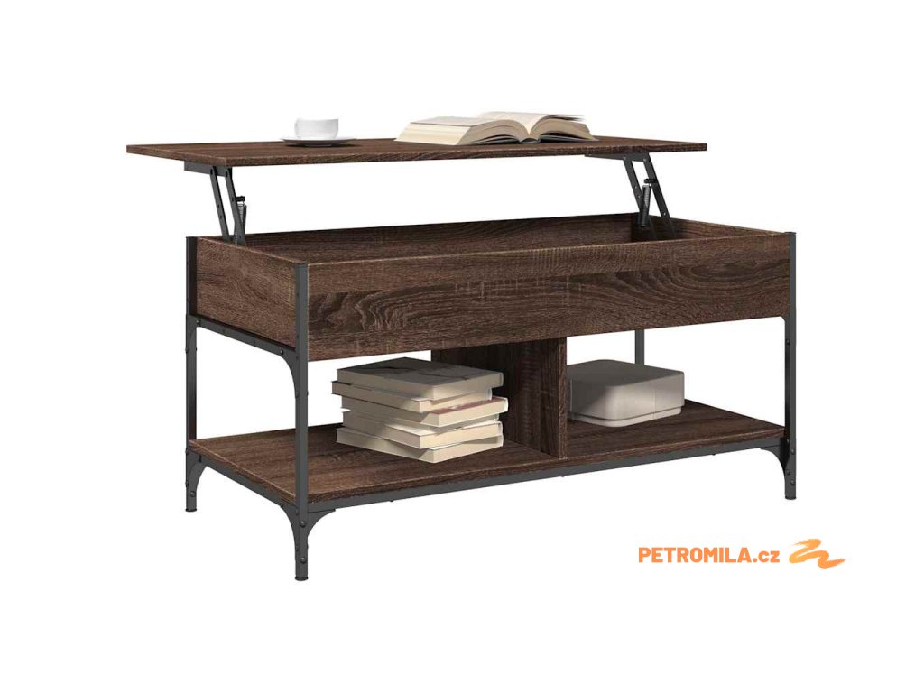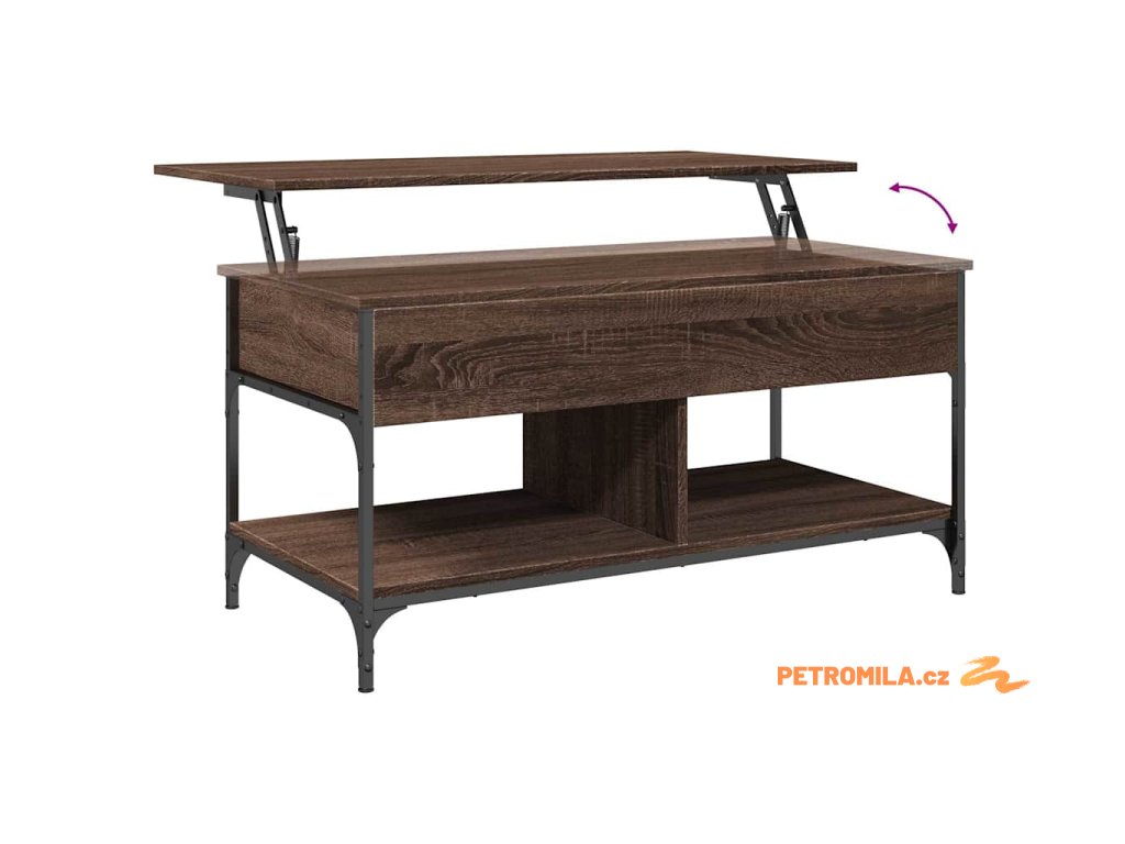 - Design se zvedací deskou: Stolní deska tohoto stolku k pohovce se dá hladce zvednout do pohodlné výšky, a tím jej přeměnit na místo, kde můžete pracovat nebo stolovat.