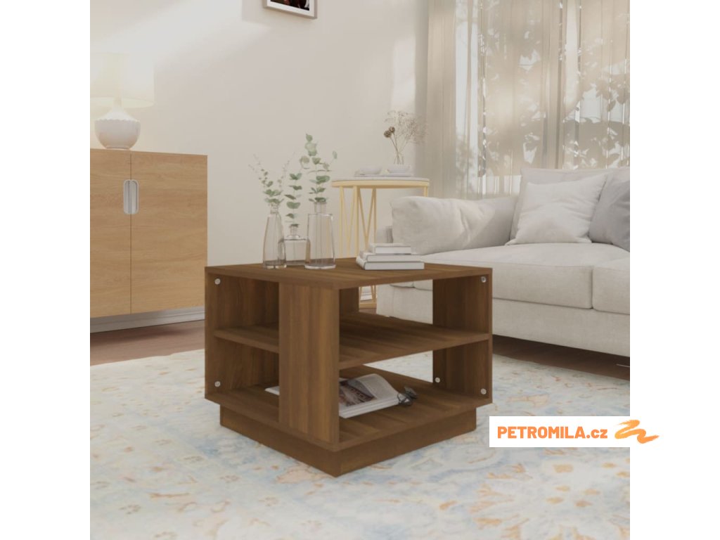 Konferenční stolek hnědý dub 55 x 55 x 43 cm dřevotříska