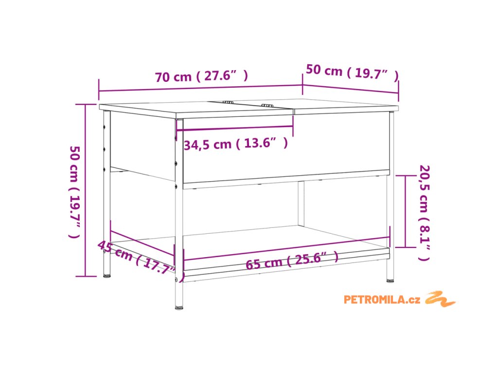 - Dostatek úložného prostoru: Stolek k pohovce má pod horní deskou spoustu úložného prostoru, jež vám poslouží jako skrytá přihrádka, kde si můžete uložit často používané věci a nebude se vám na ně prášit.