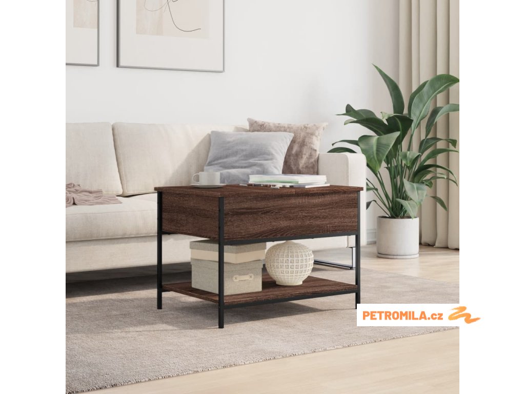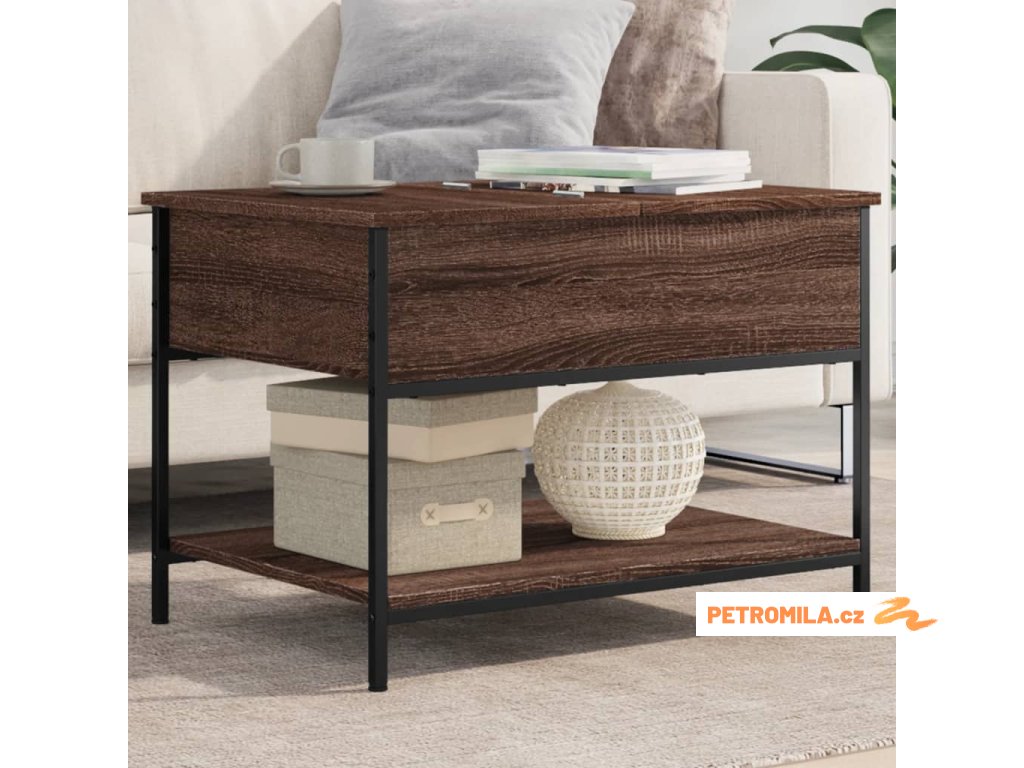Konferenční stolek hnědý dub 70 x 50 x 50 cm kompozit a kov
