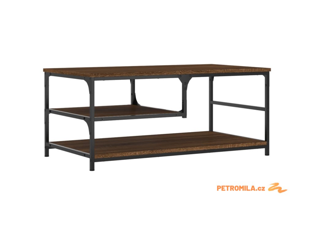 Konferenční stolek tmavě hnědý a černý 90x45x40 cm MDF a železo