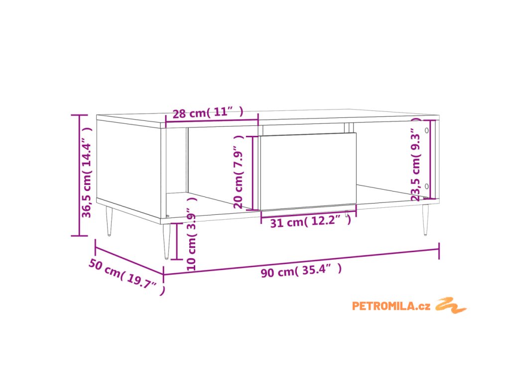 Konferenční stolek hnědý dub 90 x 50 x 36,5 cm kompozitní dřevo