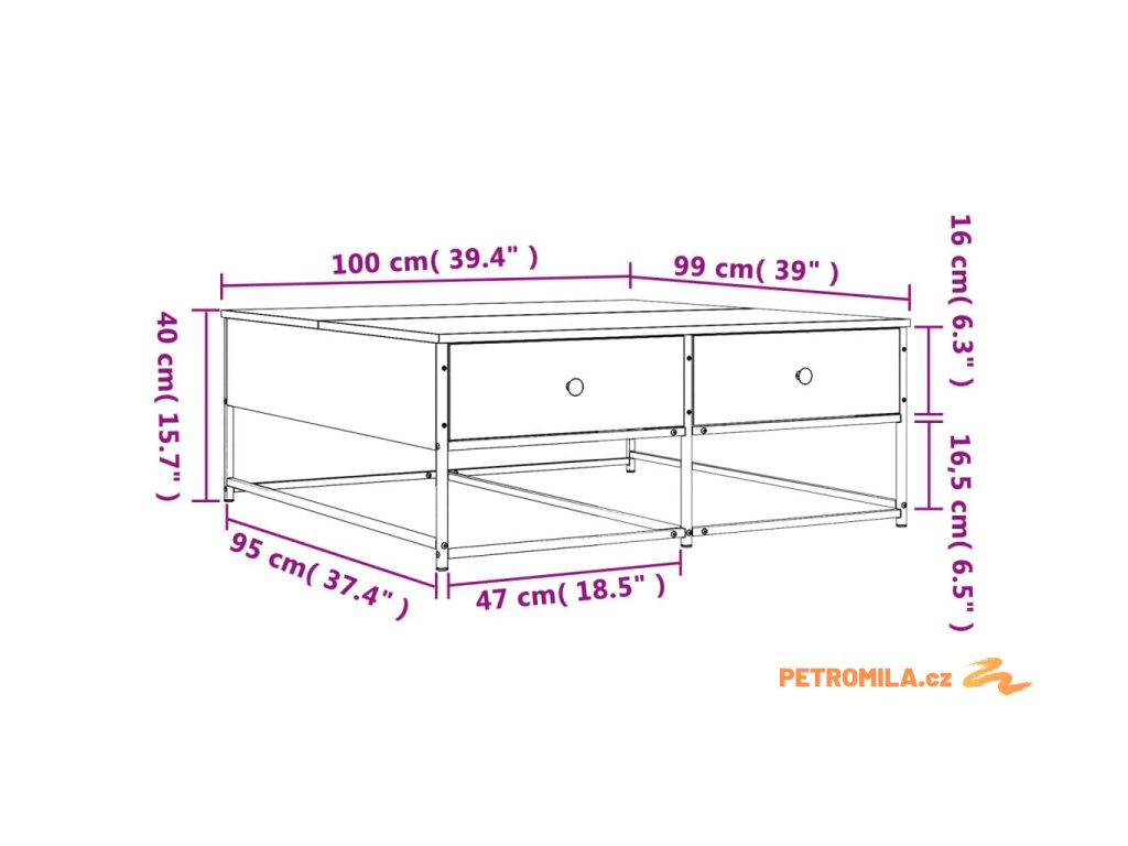 Konferenční stolek kouřový dub 100x99x40 cm kompozitní dřevo