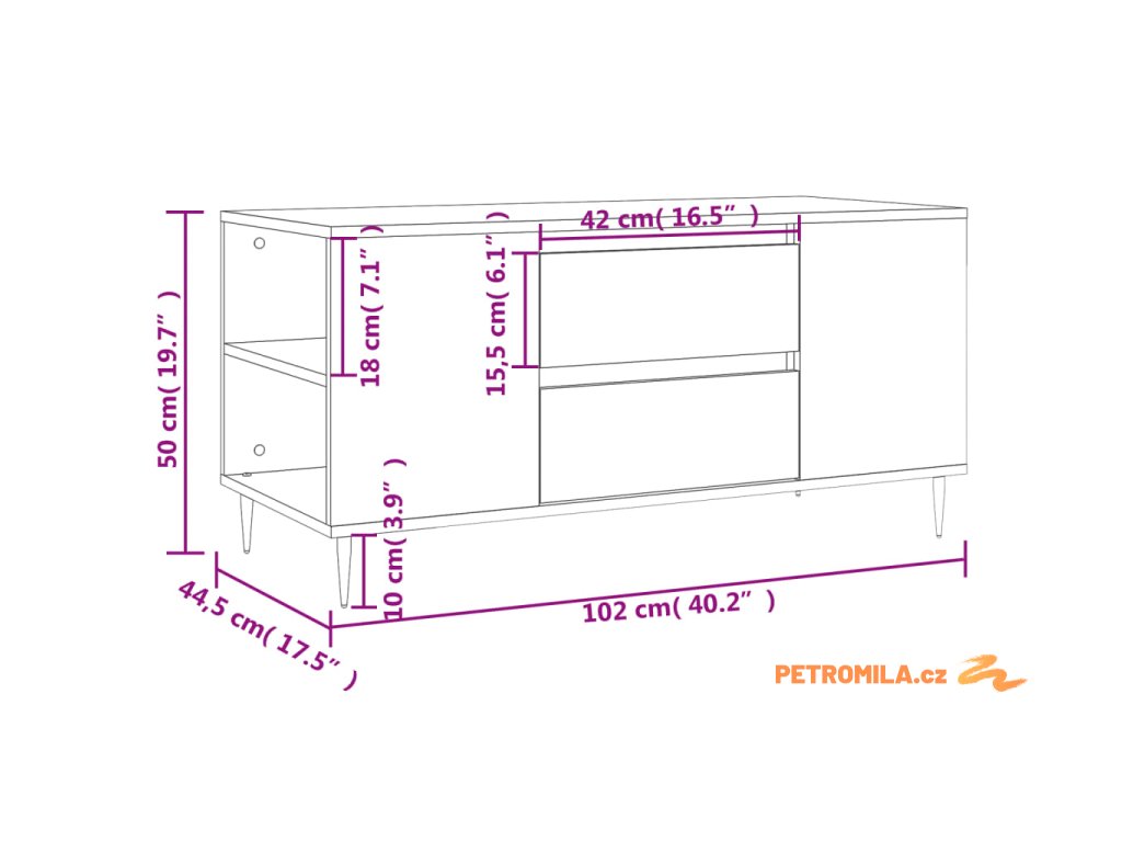 - Rozměry: 102 x 44,5 x 50 cm (D x Š x V)