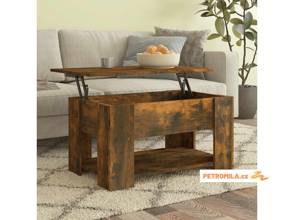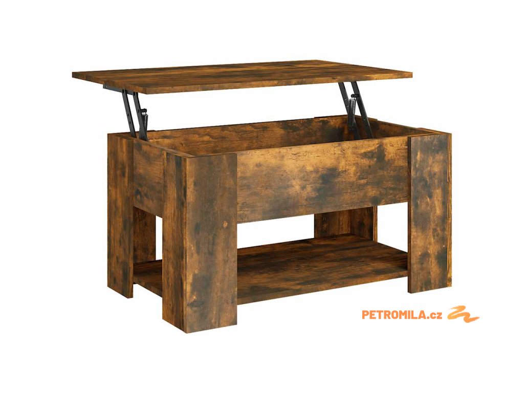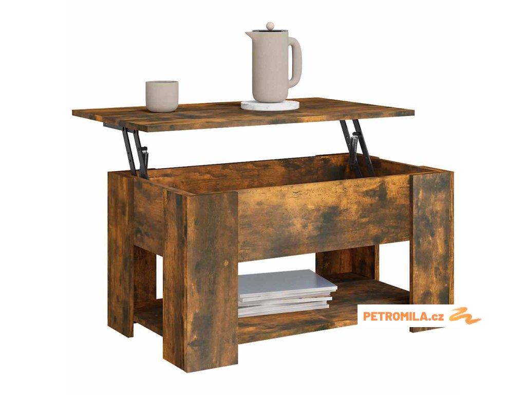 - Praktický design se zvedací deskou: Horní desku tohoto odkládacího stolku lze hladce zvednout do pohodlné výšky, a přeměnit ho tak na místo, kde můžete pracovat nebo jíst.