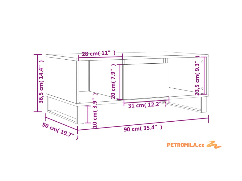 Konferenční stolek kouřový dub 90x50x36,5 cm kompozitní dřevo