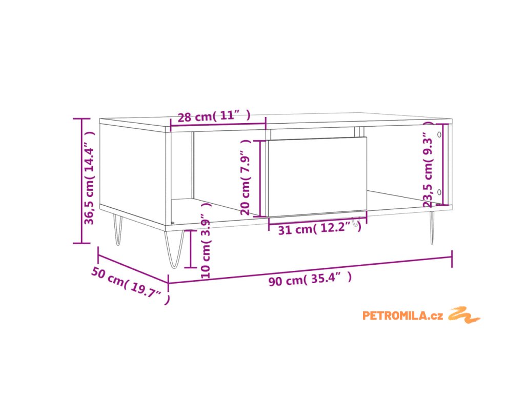 Konferenční stolek kouřový dub 90x50x36,5 cm kompozitní dřevo