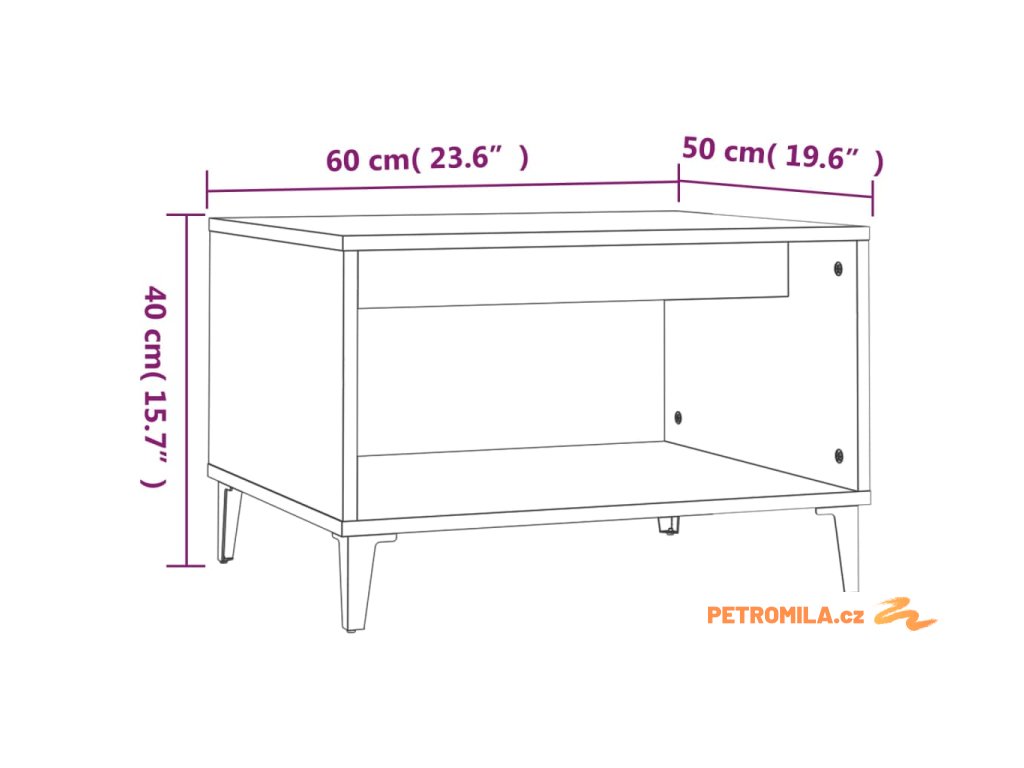 - Kovové nohy: Stolek do obývacího pokoje má kovové nohy, které dodají vašemu interiéru moderní a uvolněný styl a zároveň zajistí stabilitu.