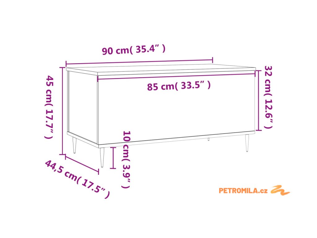 Konferenční stolek lesklý bílý 90x44,5x45 cm kompozitní dřevo