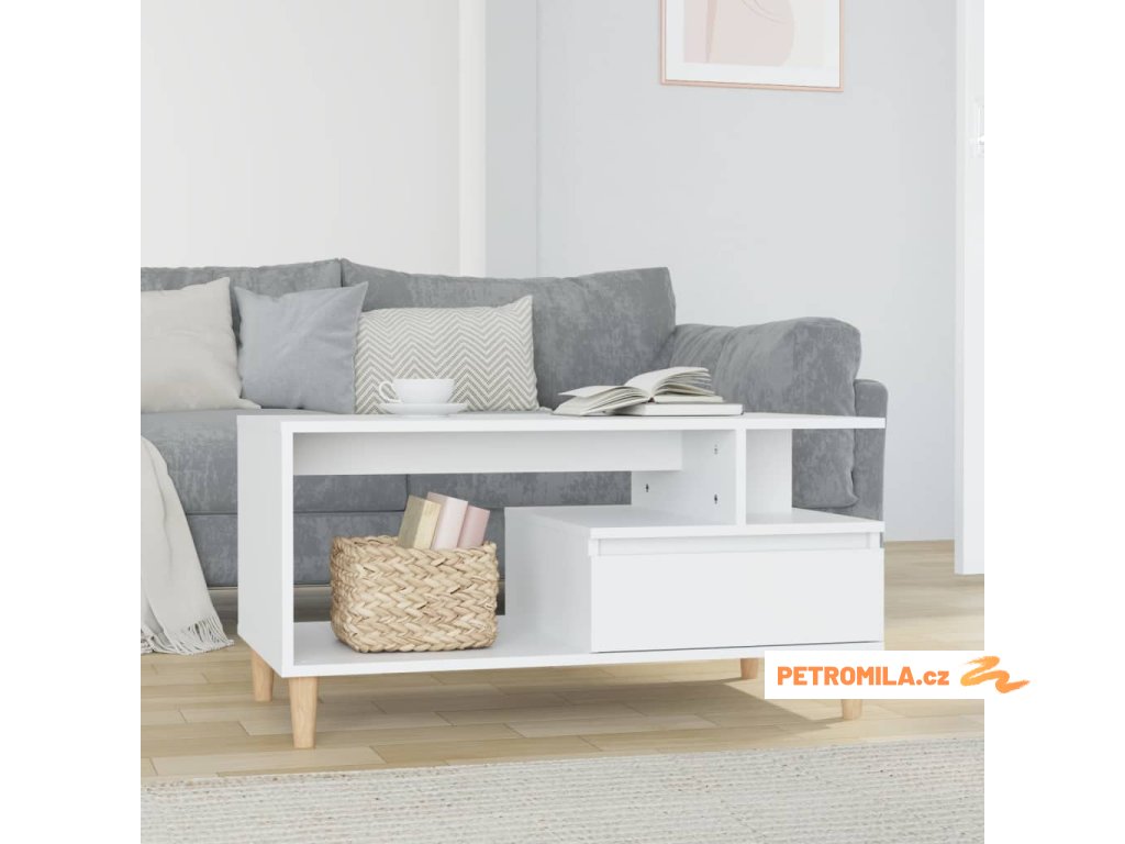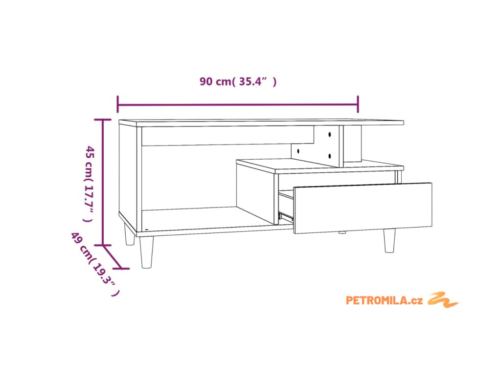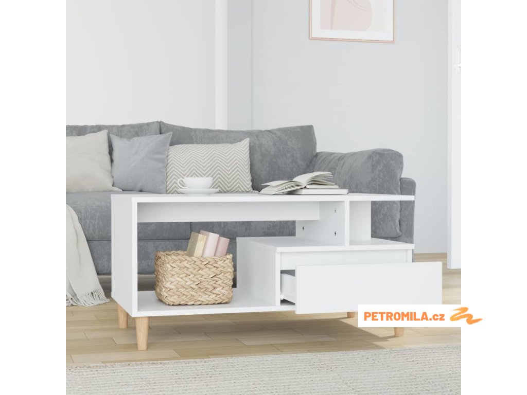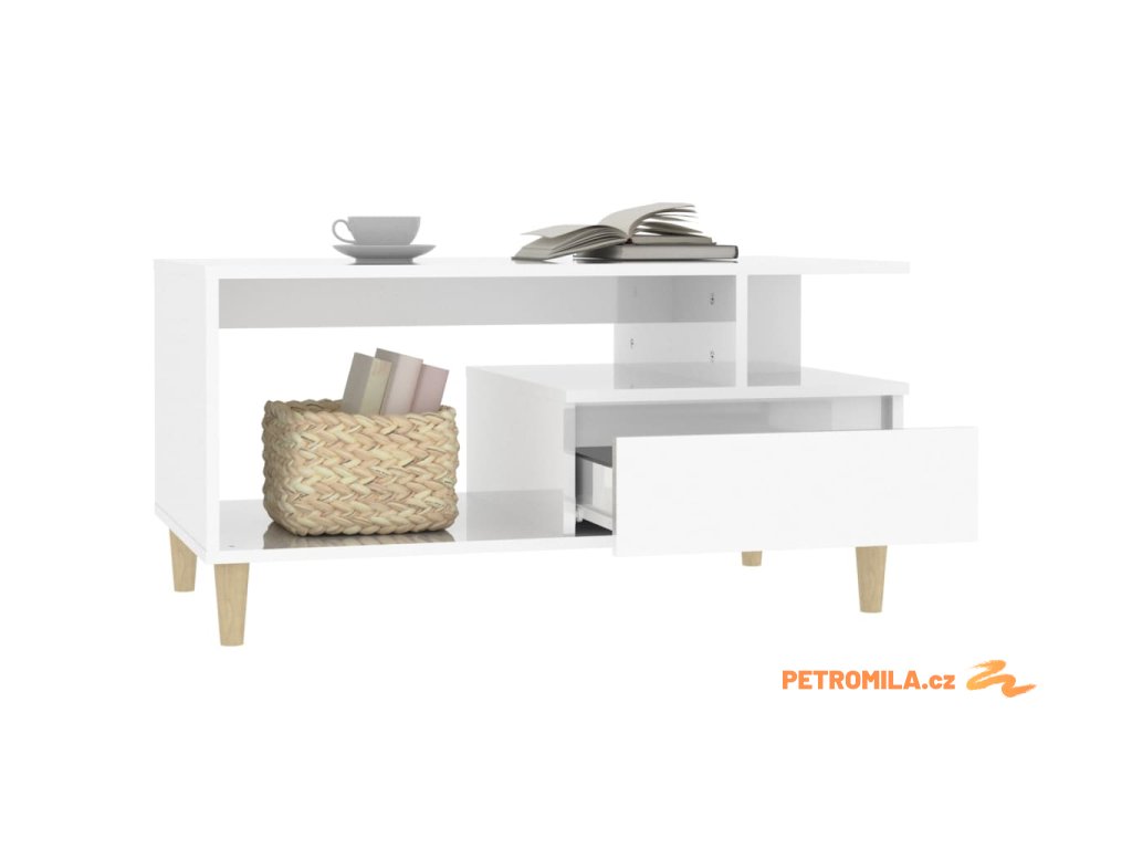 Konferenční stolek lesklý bílý 90x49x45 cm kompozitní dřevo