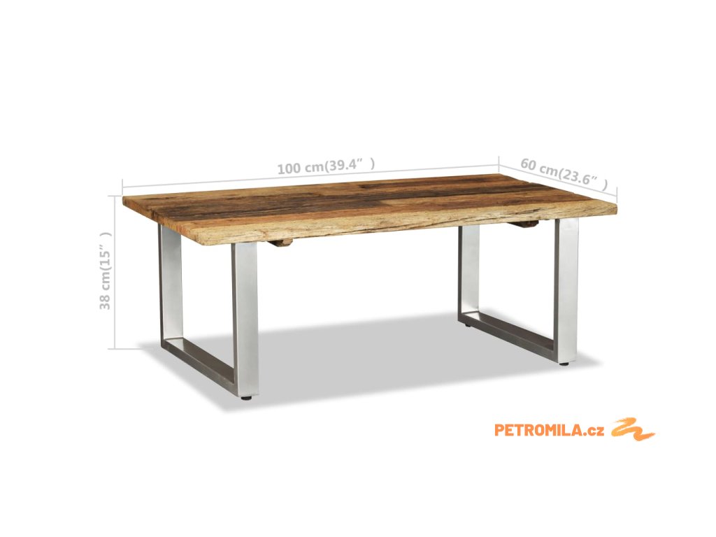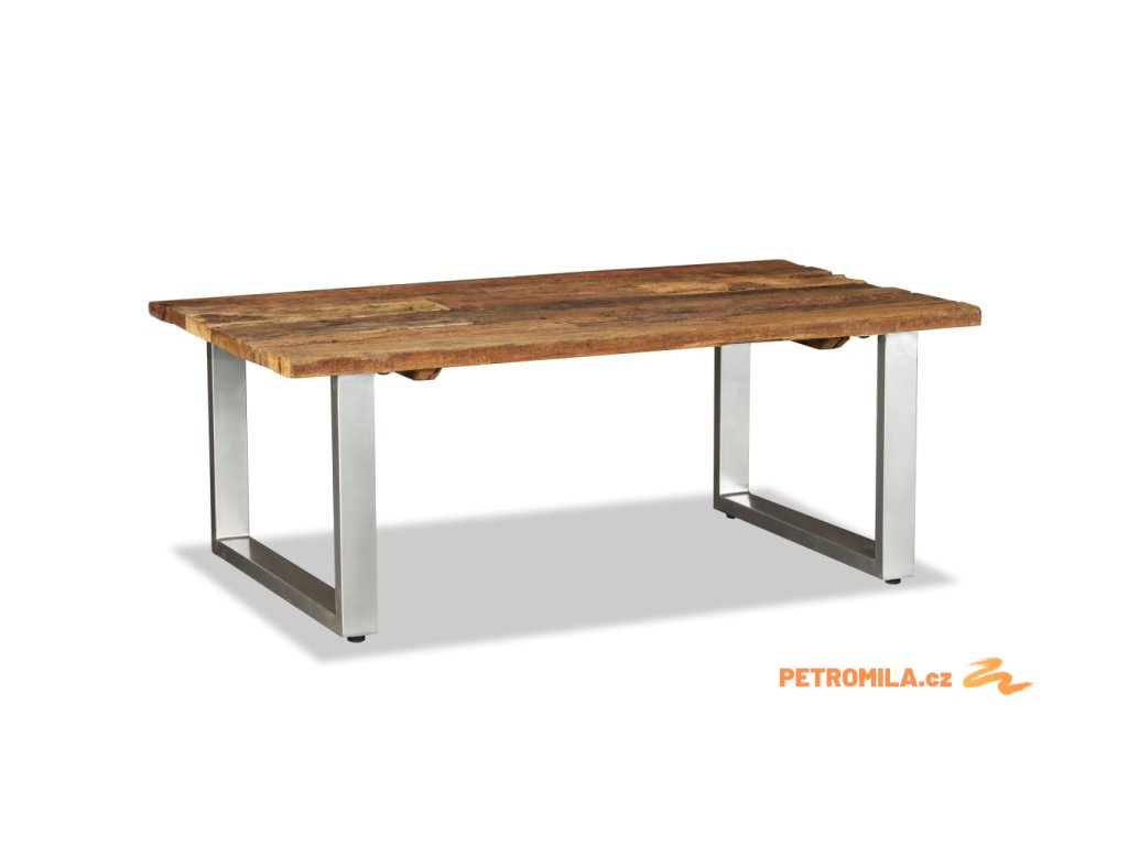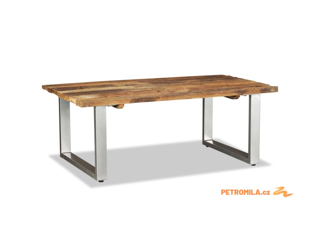 Konferenční stolek je vyrobený z recyklovaného masivního dřevo. Hrubý vzhled dřeva a precizní zpracování jen podtrhují krásný retro vzhled stolku. Každému kroku řemeslné výroby je věnována náležitá péče, ať už jde o broušení či lakování. Krásná kresba dřeva dává každému kusu nábytku jedinečný a od všech ostatních kusů odlišný vzhled. Nohy stolu jsou vyrobené z odolného tepaného železa, které je zárukou pevnosti a stability. Sestavení je velmi snadné.