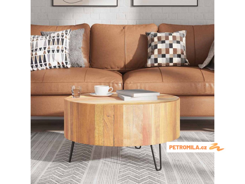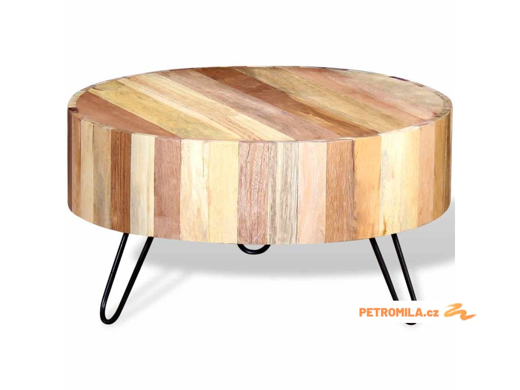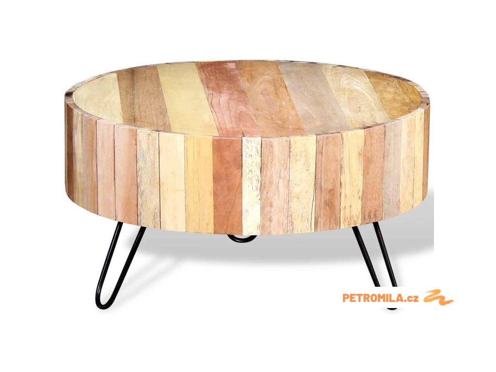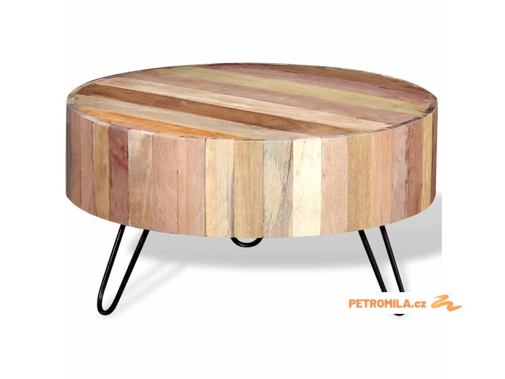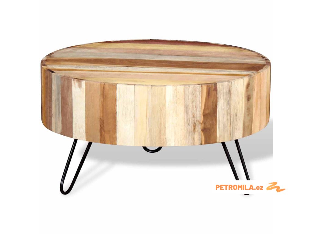 Konferenční stolek je vyrobený ručně z masivního recyklovaného dřeva, které je bytelné, odolné a krásné a má vlastnosti různých dřevin jako je teak, mangovník, akácie, recyklované dřevo, tvrdé dřevo atd. Každý krok výroby je prováděný s největší péčí, ať už jde o leštění, nebo lakování, a řemeslné zpracování dodává stolku působivý retro styl. Díky krásné struktuře dřeva je každý kus nábytku unikátní a mírně se liší od všech dalších. Rámy jsou vyrobeny z odolného železa, které zvyšuje robustnost stolků.