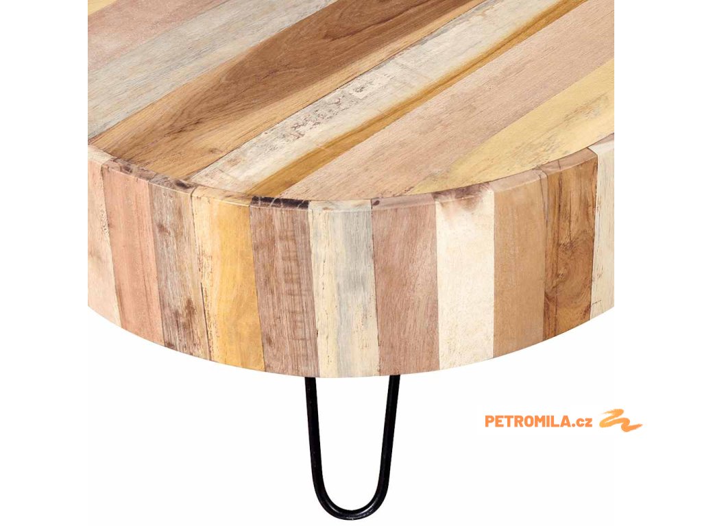 - Materiál: Deska z masivního recyklovaného dřeva + železné nohy s práškovým lakem