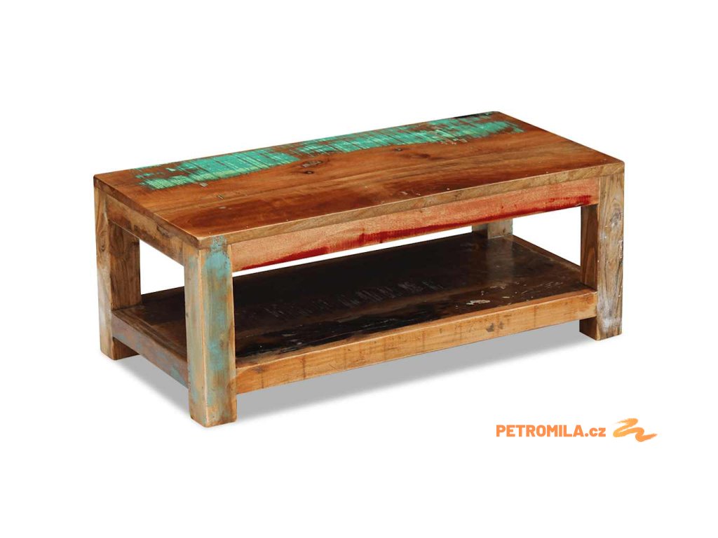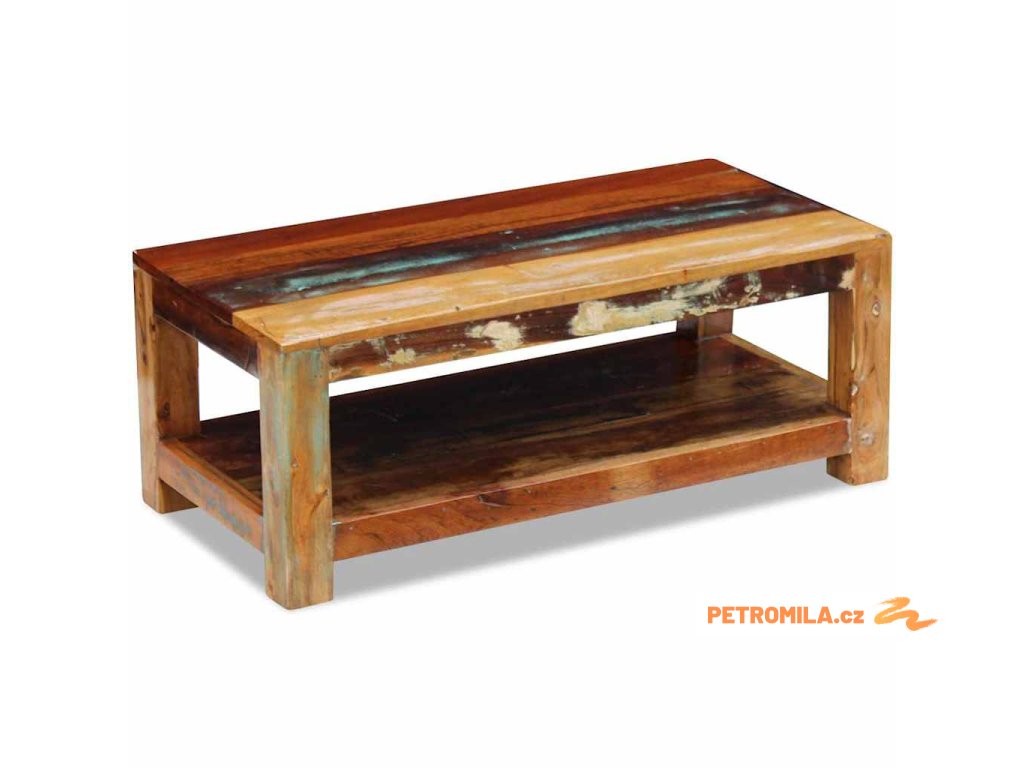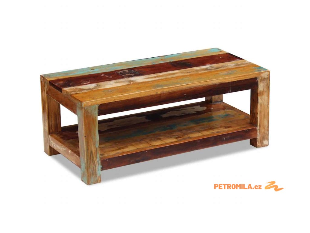 Tento z recyklovaného dřeva vyrobený konferenční stolek v retro stylu. Bude to originální kus do vašeho obýváku! Konstrukce z masivního dřeva je stabilní, takže si na ni můžete bezpečně odložit nápoje, mísy s ovocem nebo dekorativní předměty. Můžete jej také používat jako stolek ke gauči, odkládací stolek, koncový stolek konzolový stolek apod.